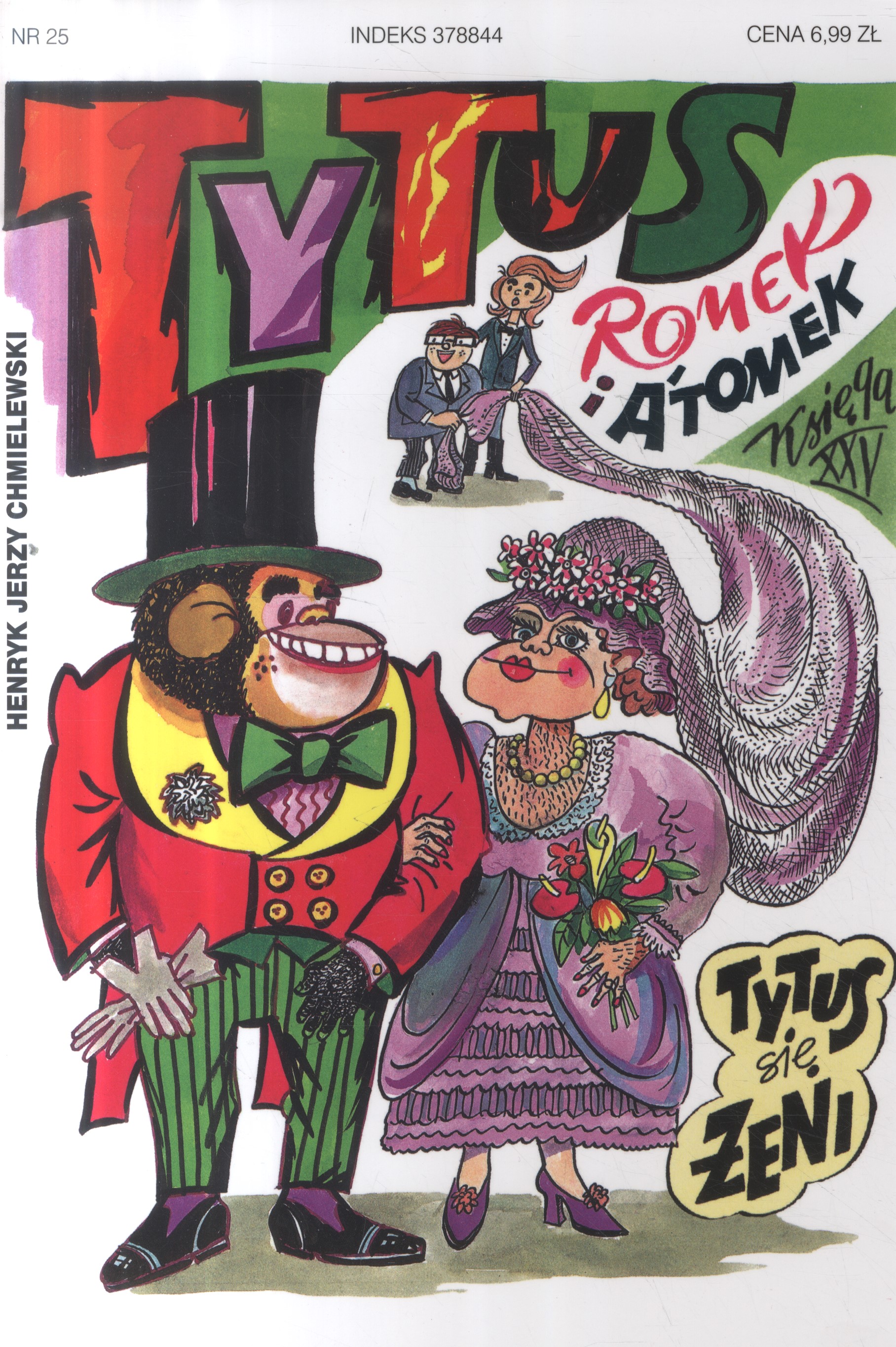 To już dwudziesta piąta książeczka ukazująca przygody sympatycznego szympansa Tytusa de ZOO i jego wiernych kompanów: Romka i A'Tomka. A'Tomek ustalił, że ostateczny termin uczłowieczenia Tytusa przypada na rok 2000. Okazało się jednak, że Tytus nie może być człowiekiem, bo nie ma duszy. Postanowił więc znaleźć duszę, ale ta od starego żelazka się nie nadawała. Także elektroniczna dusza profesora T'Alenta nie była doskonała. Tymczasem czterdziestoletni kawaler, Tytus de ZOO, dał ogłoszenie matrymonialne. Przychodziły do niego piękne kobiety, a ten się skarżył, że mają... za mało owłosione nogi. Papcio wreszcie ożenił Tytusa, jako ostatecznie uczłowieczonego. [Wydawnictwo, 2017]