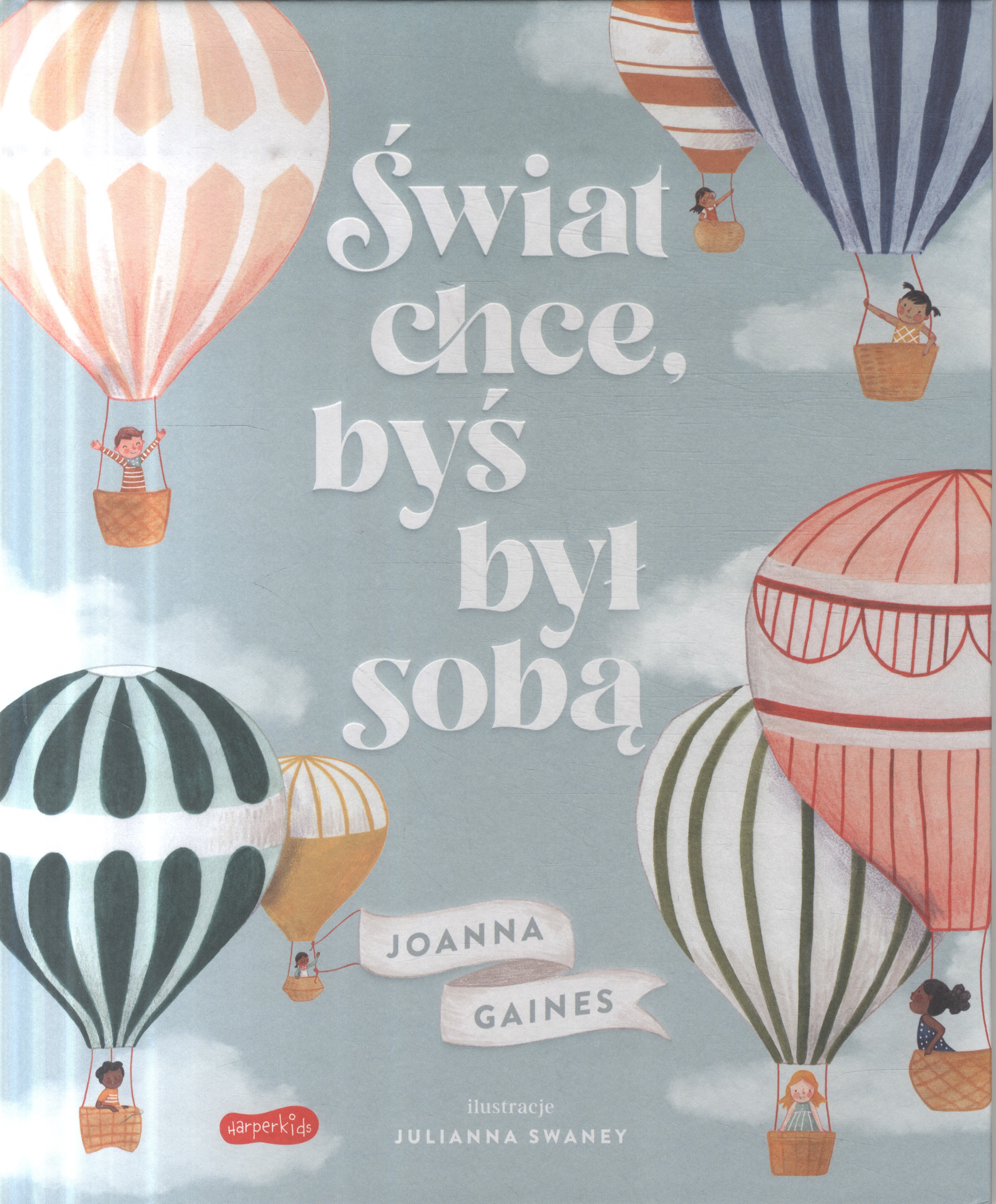 Świat chce, byś był sobą to przepiękna opowieść autorstwa Joanny Gaines, zilustrowana przez Juliannę Swaney. Autorki towarzyszą dzieciom, które konstruują własne balony na ogrzane powietrze, by wziąć udział w wielkim pokazie. Jedne z nich pracują wspólnie, inne wolą tworzyć samodzielnie. Niektóre budują skomplikowane maszyny, inne stawiają na artyzm swoich projektów. Jednak dopiero wszystkie balony wspólnie tworzą wspaniały, niezwykle barwny pokaz, który jest metaforą naszego życia – różnorodność jest nie tylko urokliwa, ale i bardzo nam wszystkim potrzebna. Każdy z nas jest inny, a ta inność jest wyjątkowa. To właśnie różnice między nami składają się na piękno otaczającego nas świata. Książka ma za zadanie wzmacniać w dzieciach poczucie własnej wartości, wskazując mocne strony każdego z nich. Zachęca do rozwijania i pielęgnowania talentów, a także akceptacji różnic między ludźmi. Podkreśla wartość pracy zespołowej.