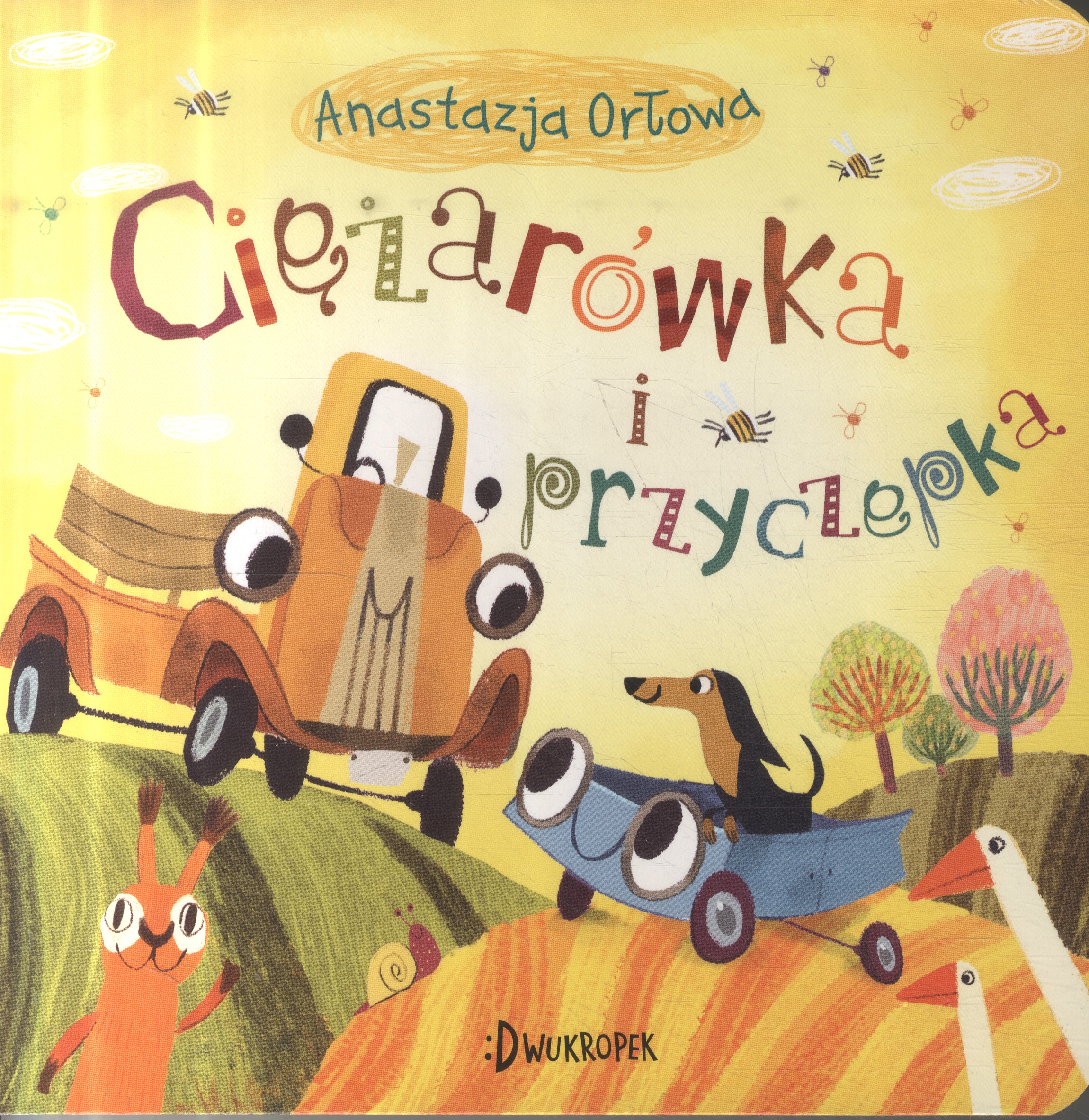 W części pierwszej poznajemy ciężarówkę i przyczepkę, które jeżdżą, toczą się, wpadają w dziury, z mozołem podjeżdżają pod górki lub radośnie pędzą w dół. A kiedy przyczepka wylatuje z drogi, musi jechać do warsztatu i wyleczyć sobie koło. Wspaniała lektura dla najmłodszych wielbicieli wszelkich pojazdów, świetna do głośnego czytania z powodu mnogości wyrazów dźwiękonaśladowczych. [Nota Wydawcy]