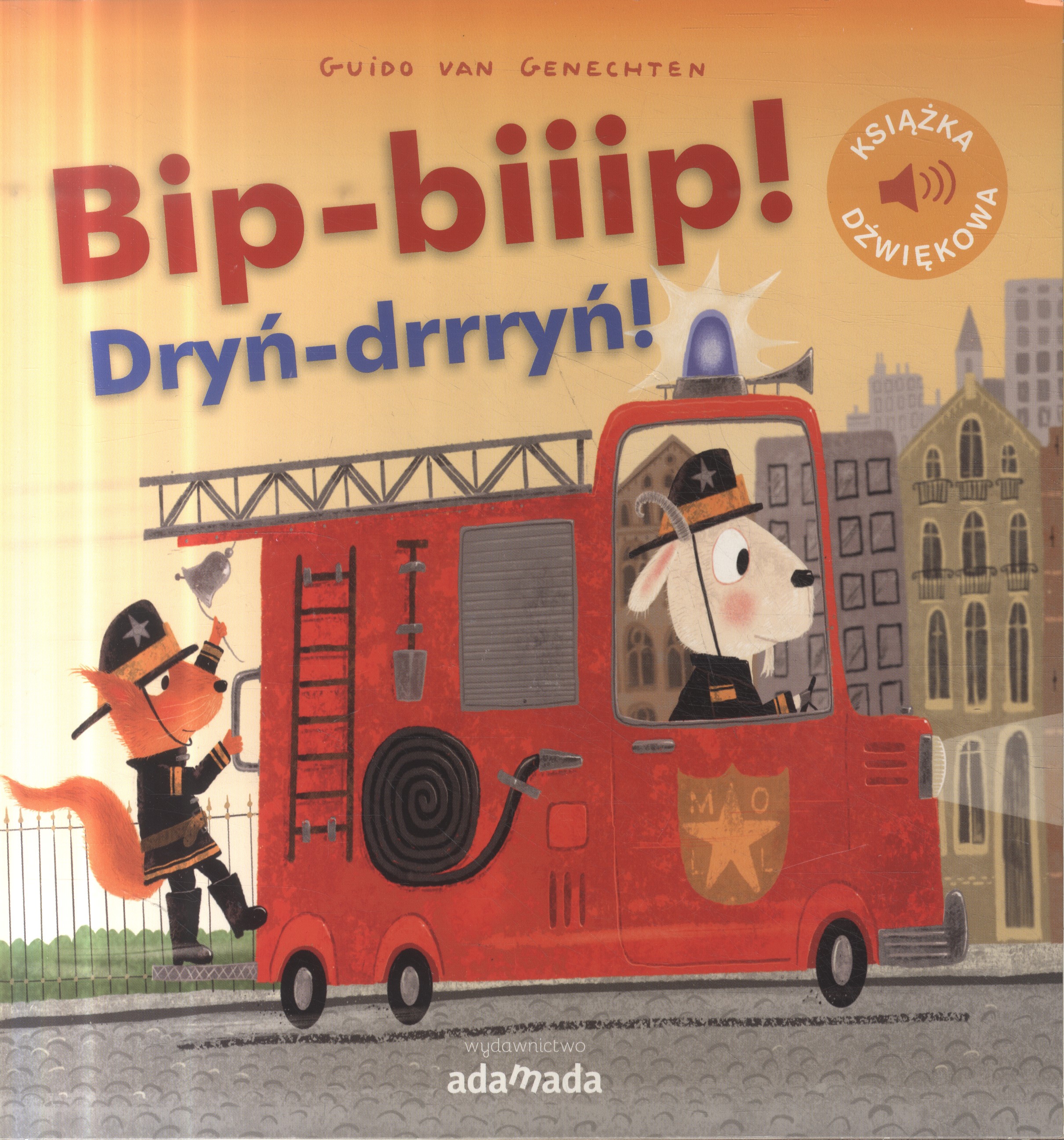 Bip-biiip! Dryń-drrryń! / Guido van Genechten ; [przekład: Ryszard Turczyn]. - Wydanie pierwsze. - Gdańsk : Wydawnictwo Adamada, 2021. - [12] stron : ilustracje ; 22 cm.