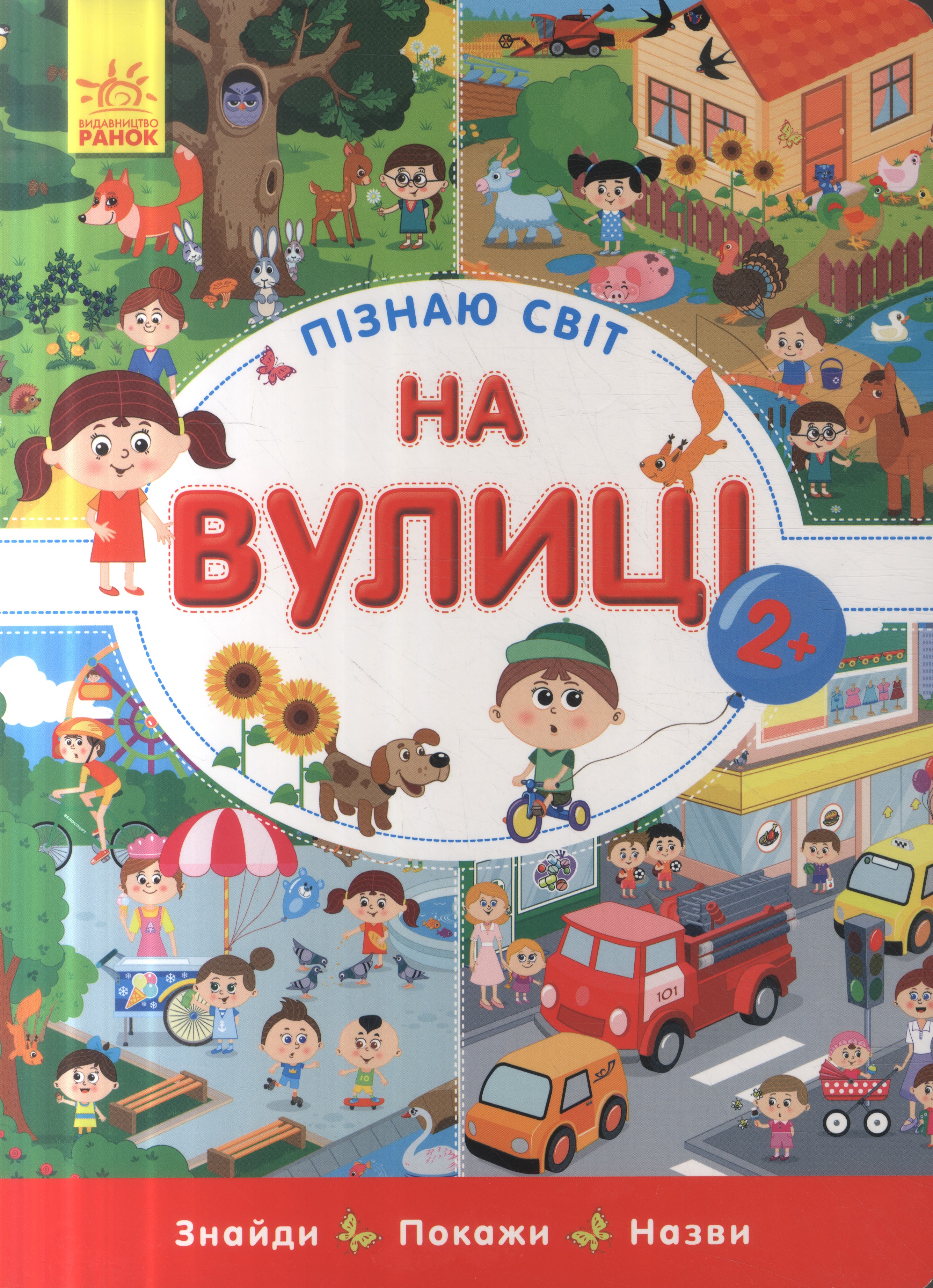 Na vulicì : znajdi, pokaži, nazvi / [hudožnìk S. O. Demidûk]. - Harkìv : Vidavnictvo Ranok, © 2018. - [10] stron : ilustracje ; 32 cm.