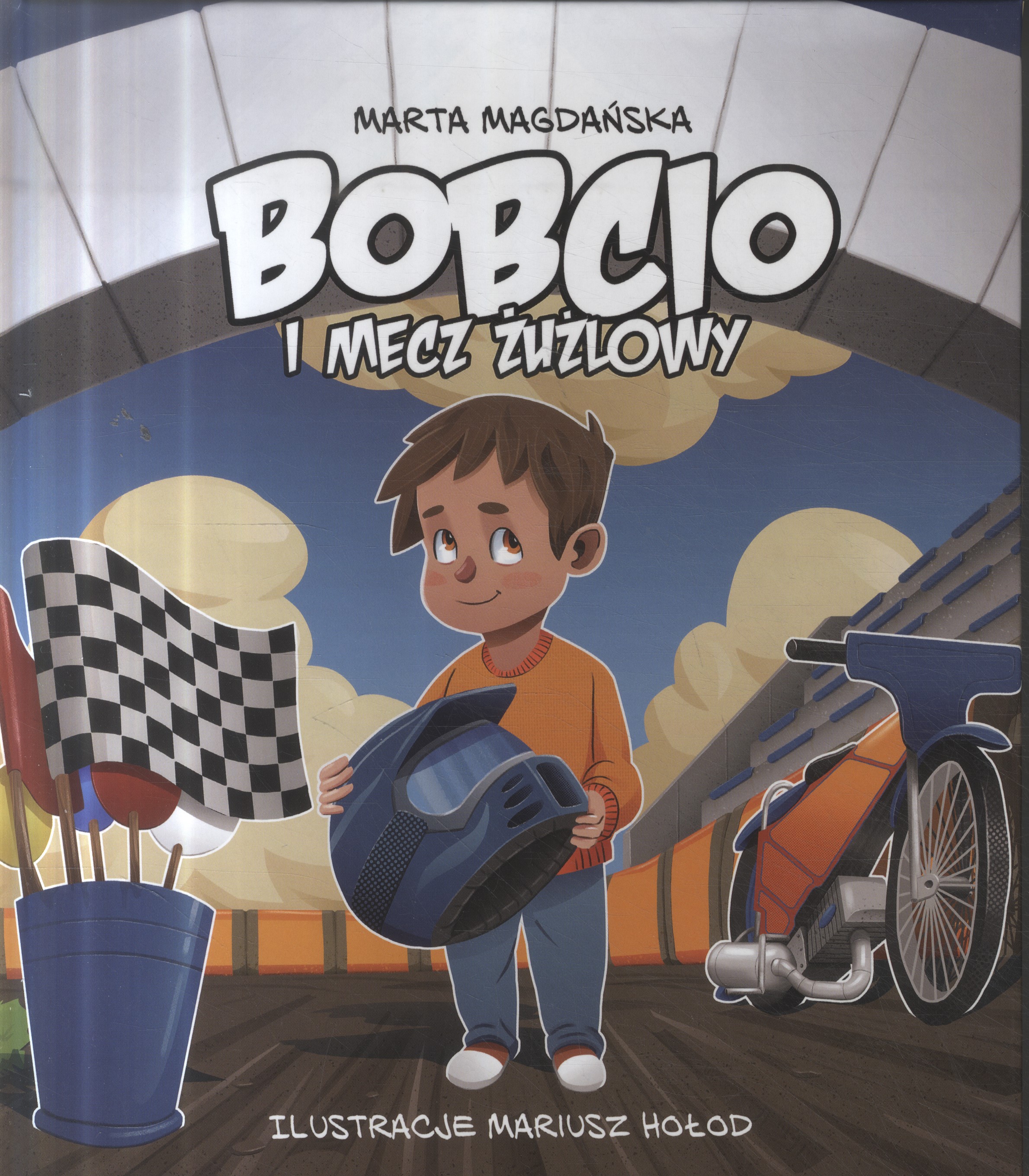 Bobcio i mecz żużlowy / Marta Magdańska ; ilustracje Mariusz Hołd. - Wydanie I. - Poznań : Wydawnictwo Nowa Baśń, copyright 2021. - 31, [1] strona : ilustracje ; 24 cm.