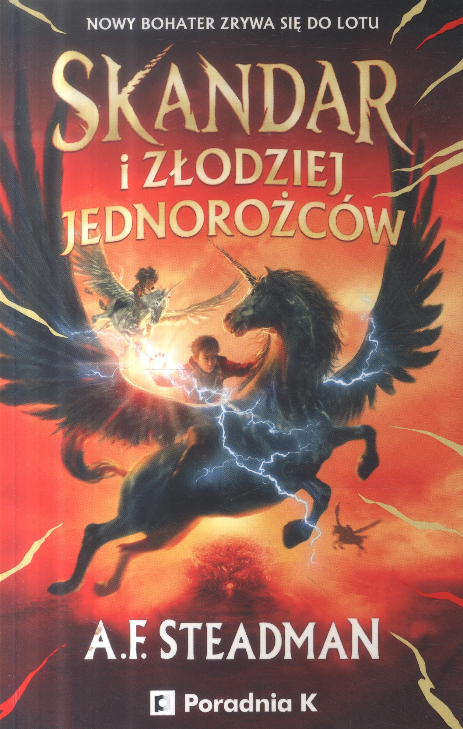 Warto dodać, że już trwają prace nad ekranizacją przez Sony Pictures! Jednorożce nie należą do świata bajek, pojawiają się w koszmarach, które z bijącym sercem budzą Cię w ciemności nocy… Zaciekłe bestie mogą być tylko ujarzmione przez wybranych. Trzynastoletni Skandar Smith zawsze chciał być jeźdźcem jednorożca. Być jednym z niewielu szczęśliwców wybranych do związania się z nim na całe życie; trenowania i ścigania się o chwałę; bycia bohaterem. Ale gdy marzenie Skandara ma się spełnić, sprawy zaczynają przybierać bardziej niebezpieczny obrót, niż mógł sobie wyobrazić. Mroczny i potężny wróg ukradł najpotężniejszego jednorożca na wyspie – a gdy zagrożenie staje się coraz bliższe, Skandar odkrywa tajemnicę, która może na zawsze rozbić jego świat na kawałki… Będzie zmuszony zmierzyć się z przeszłością, by chronić najbliższych. Przygotujcie się na niezwykłych bohaterów, magię żywiołów, podniebne bitwy, pradawne tajemnice, emocjonujące wyścigi i przerażające jednorożce w tej fantastycznej przygodowej serii, która przyprawi Was o szybsze bicie serca! [Wydawnictwo, 2022]