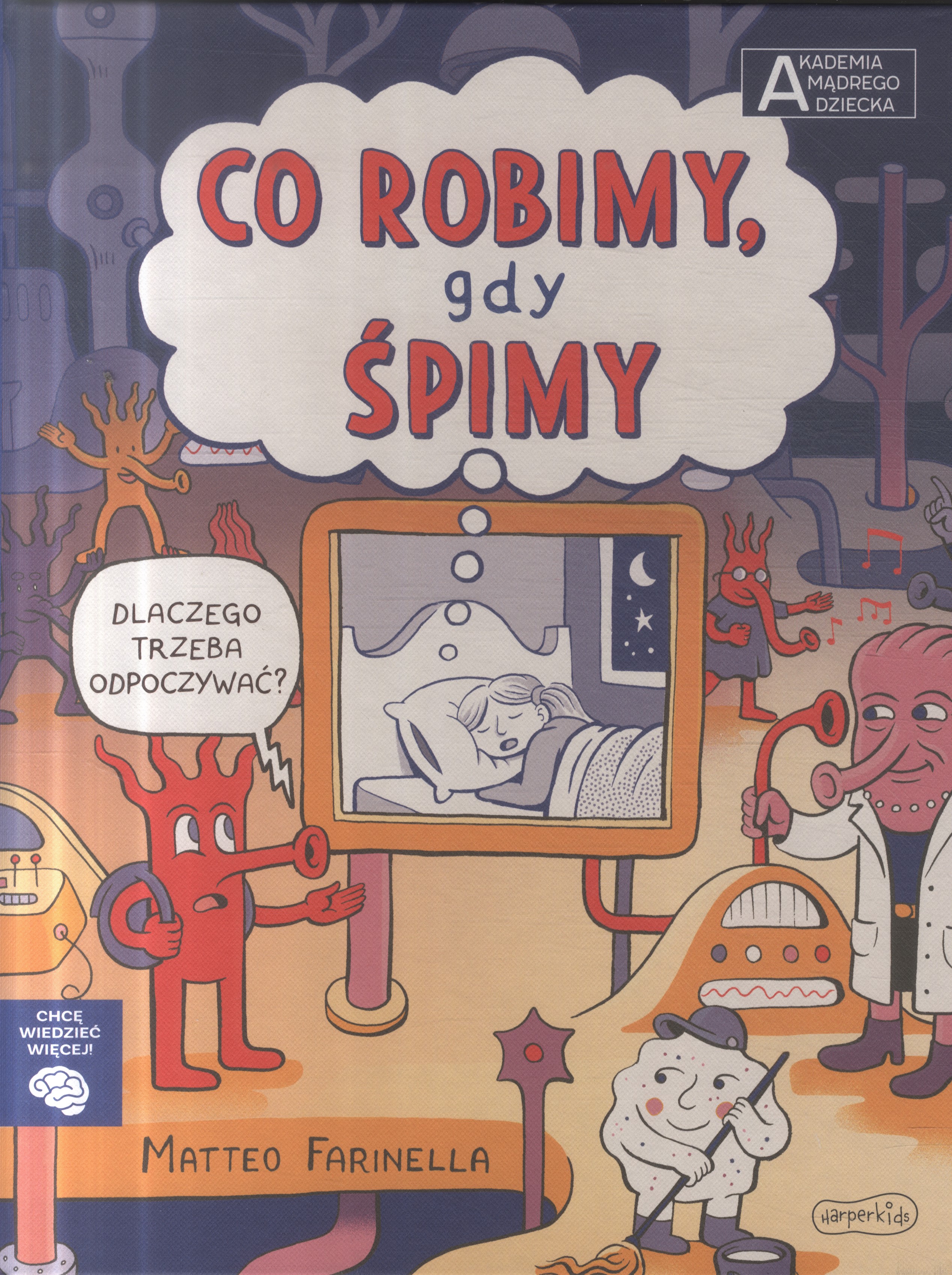 Co robimy, gdy śpimy / tekst i ilustracje Matteo Farinella ; przekład Ewa Nicewicz. - Warszawa : Harperkids, copyright 2022. - [40] stron : ilustracje ; 29 cm.