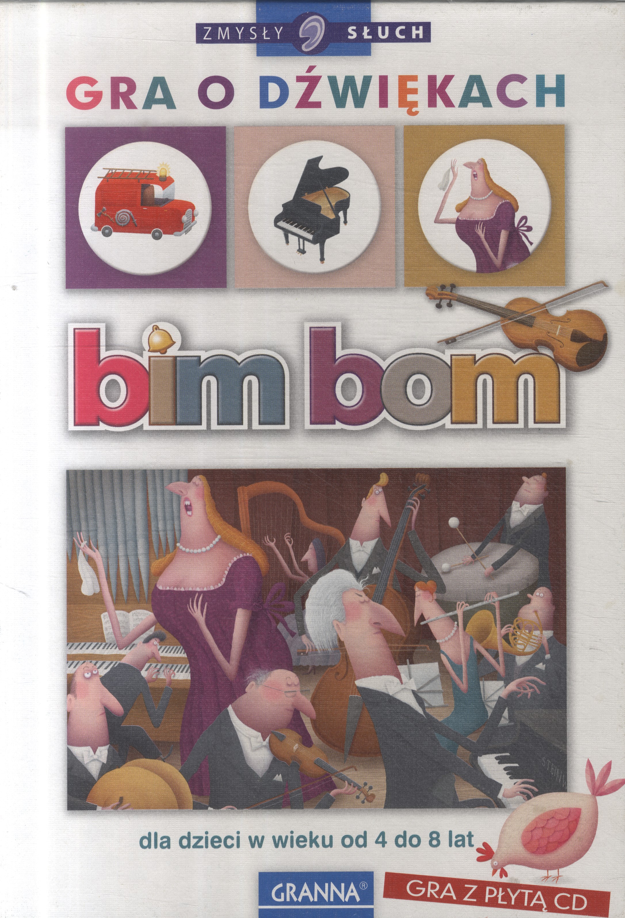 Bim bom : gra o dźwiękach / ilustracje: Piotr Socha. - Warszawa : Granna, © 2010. - 1 pudełko ; 27x19x5 cm.