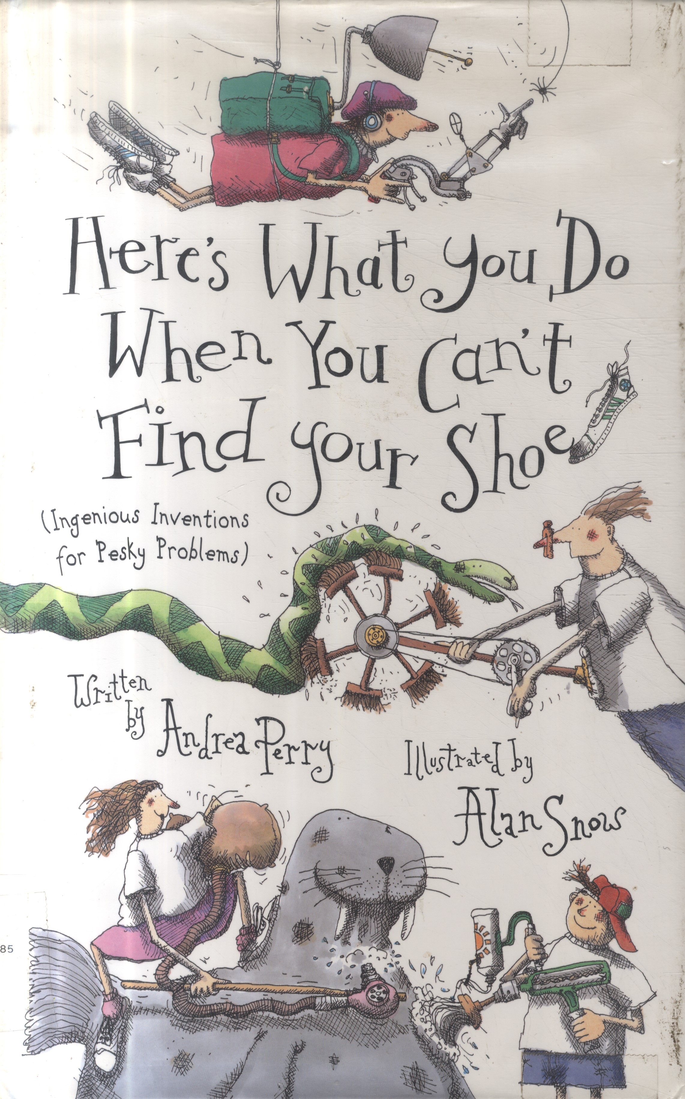 Short poems describe crazy inventions, like footsie floss, hotels for bugs, and a super spider spotter for Miss Muffet.