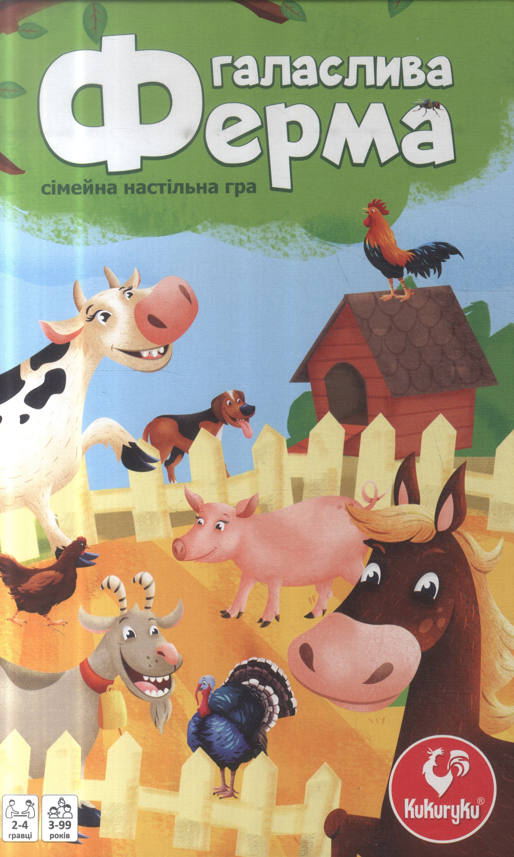 Галаслива ферма - це динамічна карткова гра, яка забезпечить чудову розвагу для всієї родини. Виявивши на фермі хоча б трьох однакових тварин, потрібно якнайшвидше покласти руку на хлів і видати відповідний звук. Завдяки цьому ви отримаєте тварин для своєї ферми. Під час гри гравці повинні проявити рефлекси та вміння імітувати звуки багатьох тварин!