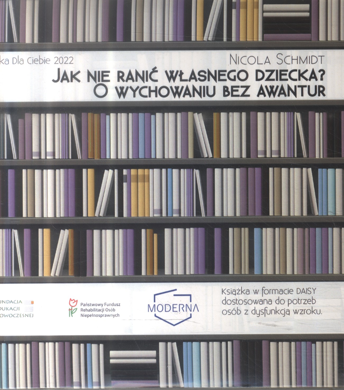 Książka w formacie DAISY dostosowana do potrzeb osób z dysfunkcją wzroku, wydana przez Fundację Edukacji Nowoczesnej z Warszawy oraz Fundację "Moderna" z Jeleniej Góry w ramach projektu "Książka dla Ciebie 2022", sfinansowanego ze środków Państwowego Funduszu Rehabilitacji Osób Niepełnosprawnych (PFRON).