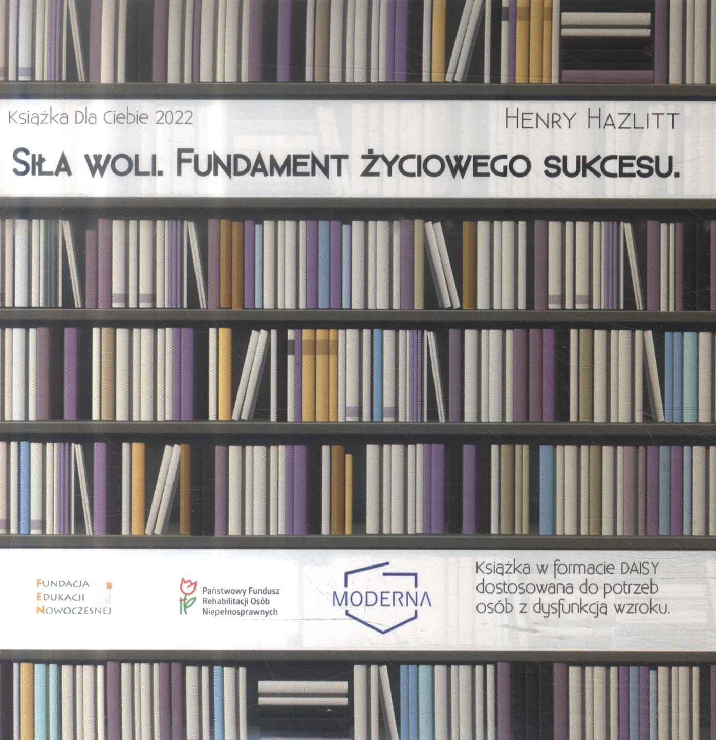 Książka w formacie DAISY dostosowana do potrzeb osób z dysfunkcją wzroku, wydana przez Fundację Edukacji Nowoczesnej z Warszawy oraz Fundację "Moderna" z Jeleniej Góry w ramach projektu "Książka dla Ciebie 2022", sfinansowanego ze środków Państwowego Funduszu Rehabilitacji Osób Niepełnosprawnych (PFRON).