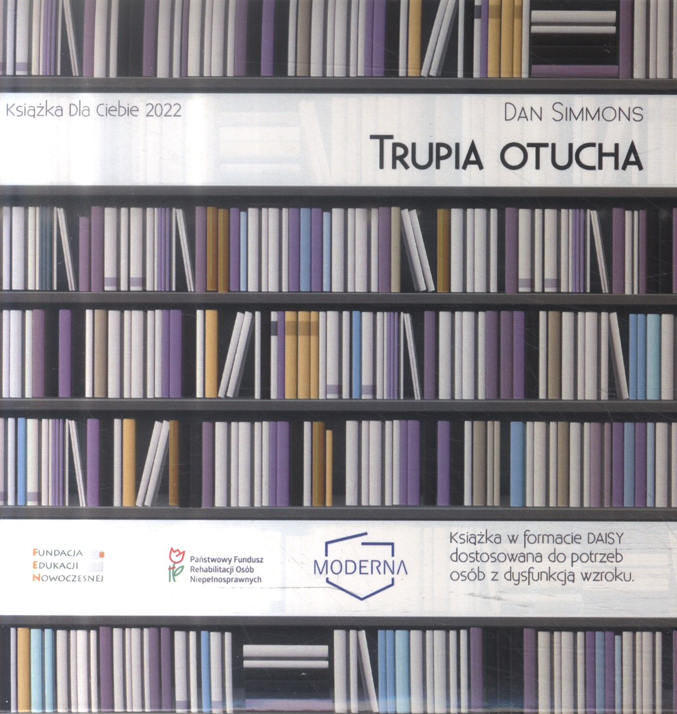 Książka w formacie DAISY dostosowana do potrzeb osób z dysfunkcją wzroku, wydana przez Fundację Edukacji Nowoczesnej z Warszawy oraz Fundację "Moderna" z Jeleniej Góry w ramach projektu "Książka dla Ciebie 2022", sfinansowanego ze środków Państwowego Funduszu Rehabilitacji Osób Niepełnosprawnych (PFRON).