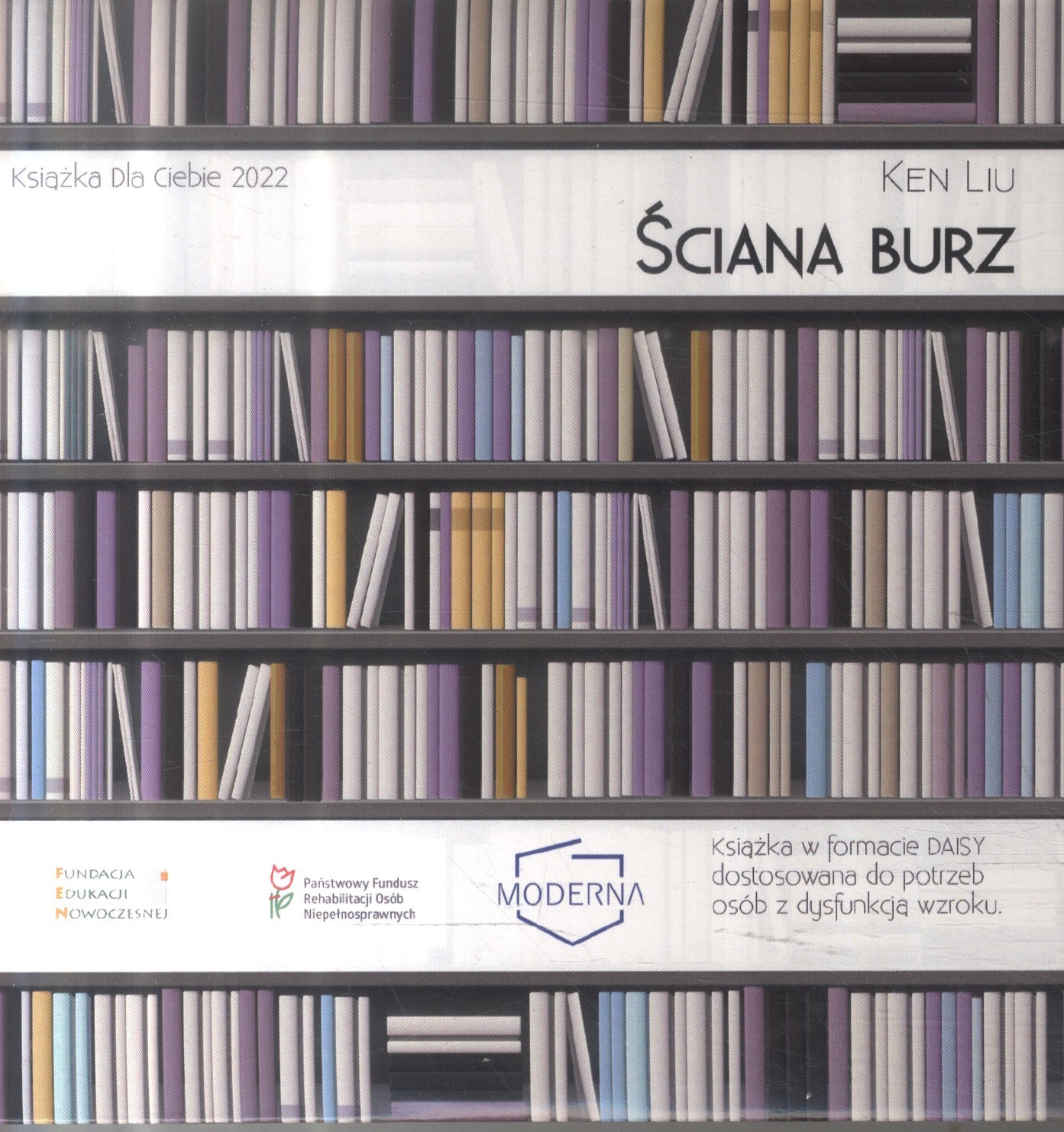 Książka w formacie DAISY dostosowana do potrzeb osób z dysfunkcją wzroku, wydana przez Fundację Edukacji Nowoczesnej z Warszawy oraz Fundację "Moderna" z Jeleniej Góry w ramach projektu "Książka dla Ciebie 2022", sfinansowanego ze środków Państwowego Funduszu Rehabilitacji Osób Niepełnosprawnych (PFRON).
