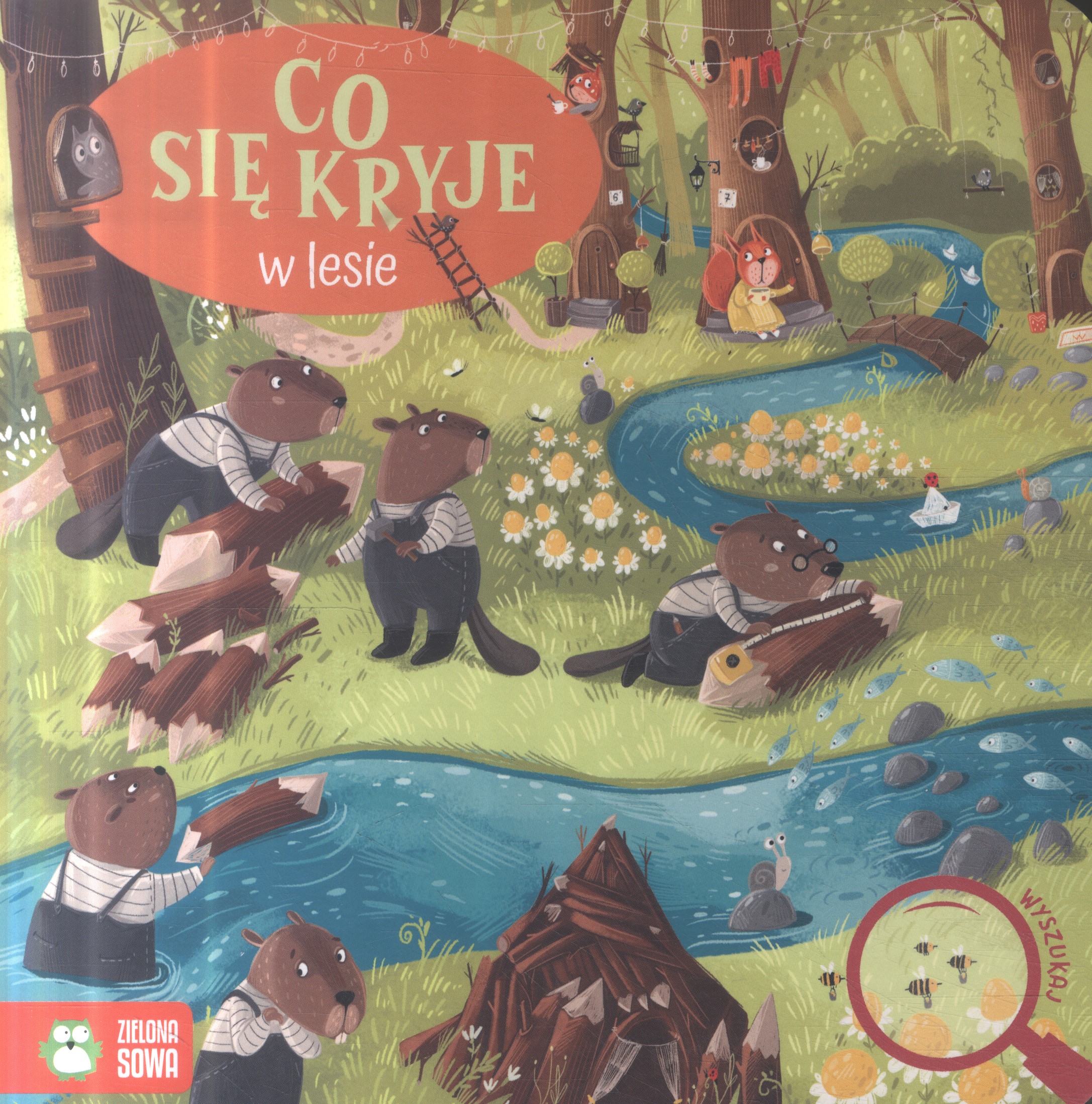 Co się kryje w lesie / ilustracje Olena Bugrenkova. - Wydanie I. - Warszawa : Zielona Sowa, copyright 2023. - [12] stron : ilustracje kolorowe ; 19 cm.