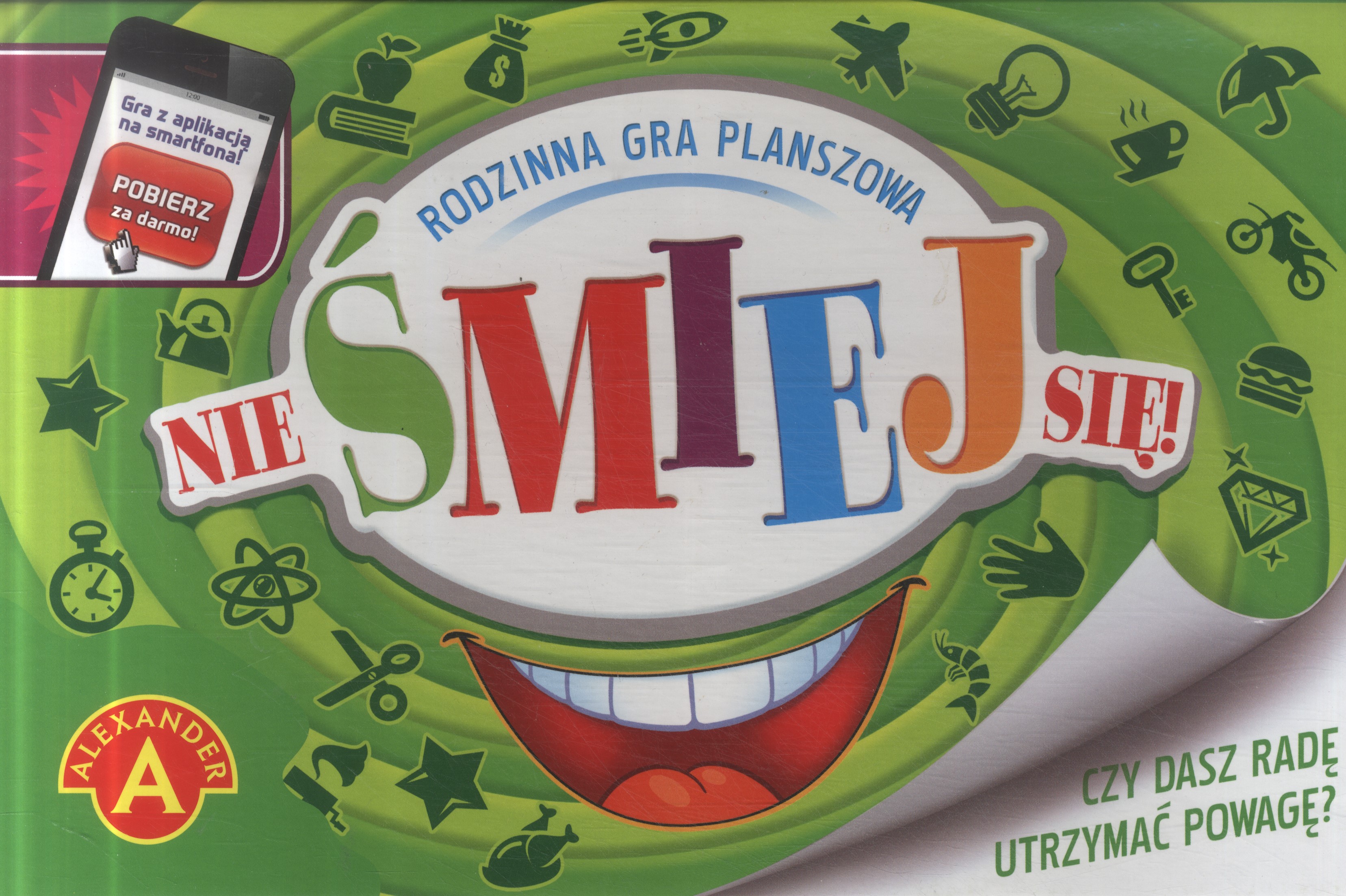Nie śmiej się : rodzinna gra planszowa. - Chwaszczyno k/Gdyni : Aleksander, [2018]. - 1 pudełko ; 29x19x5 cm.