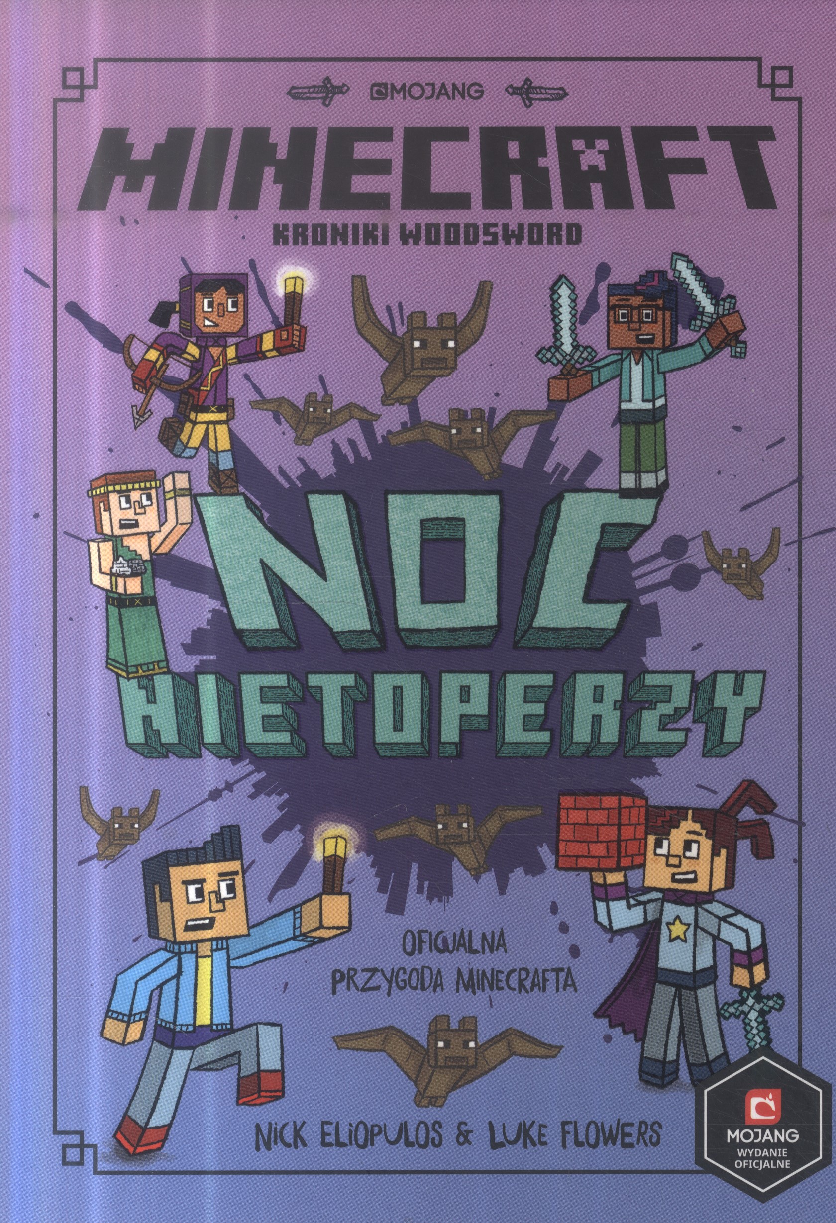 Druga po "Minecraft. W świecie gry" oficjalna powieść na licencji Minecrafta z serii "Kroniki Woodsword". "Minecraft. Noc nietoperzy" zachwyci wielbicieli kultowej gry Minecraft. Zwłaszcza graczy w przedziale wiekowym 7-13 lat, do których powieść jest adresowana. „Minecraft. Noc nietoperzy” jest kontynuacją przygód Morgan, Ash, Harper, Po i Jodi, poznanych w pierwszej książce z ich perypetiami pt.„Minecraft. W świecie gry”. Piątka uczniów szkoły Woodsword jest zapalonymi fanami gry Minecraft, którym trafiła się nie lada gratka. Dzięki tajemniczym goglom mogą przenieść się do komputerowego świata Minecrafta. W drugiej części ich przygód “Minecraft. Noc nietoperzy” w szkole Woodsword niespodziewanie pojawia się horda nietoperzy. - Nietoperze to jedne z najczęściej spotykanych mobów w Minecrafcie - czy to przypadek, że pojawiły się teraz w szkole? - Czy to możliwe, że wydostały się z gry? [...]