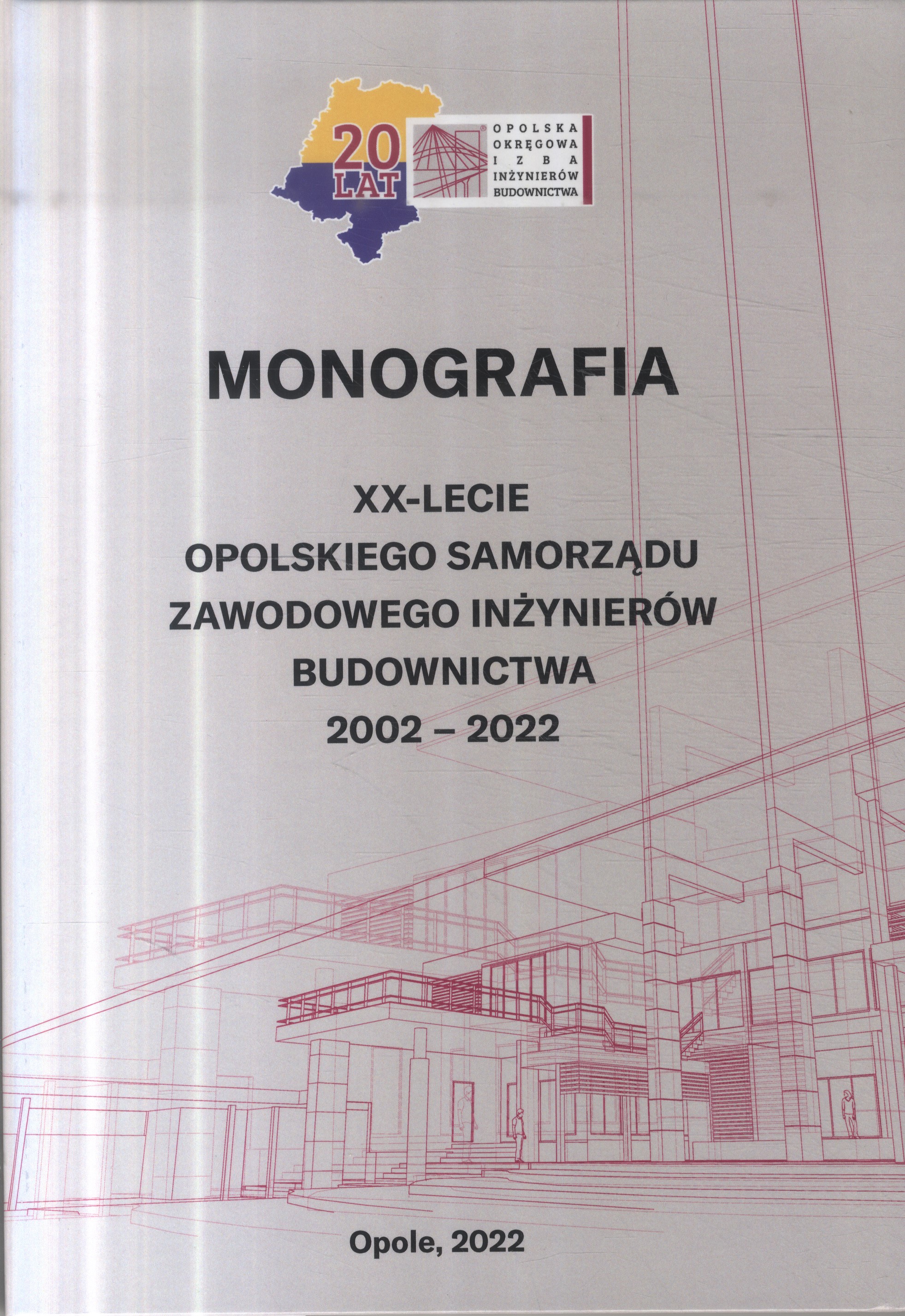 W 2022 roku opolski samorząd zawodowy inżynierów budownictwa obchodzi XX-lecie działalności. Jest to okazja, aby na tle osiągnięć w mijającym okresie, podjąć dyskusję nad czekającymi zadaniami w aspekcie otoczenia, w jakim pracują jego członkowie sprawujący samodzielne funkcje techniczne w budownictwie. Taki jest też cel przygotowanej Monografii... Jubileusz XX-lecia powinien być wykorzystany do promowania działań OPL OIIB w regionie. Tak więc, jest to ważny rok w naszej działalności. Aby sprostać tym wymaganiom zachęcam do współpracy i współdziałania. Nasz samorząd zawodowy to wspólne działania dla dobra branży budowlannej, to reprezonowanie i ochrona interesów zawodowych, to także sprawowanie nadzoru nad należnym i sumiennym wykonywaniem zawodu przez członków Izby. Izba, to to nie tylko organy statutowe, lecz jej członkowie, którzy poprzez aktywne uczestnictwo w jej życiu mogą kreowac jej wizerunek. [Adam Rak, przewodniczący Okręgowej Rady OPL OIIB,]