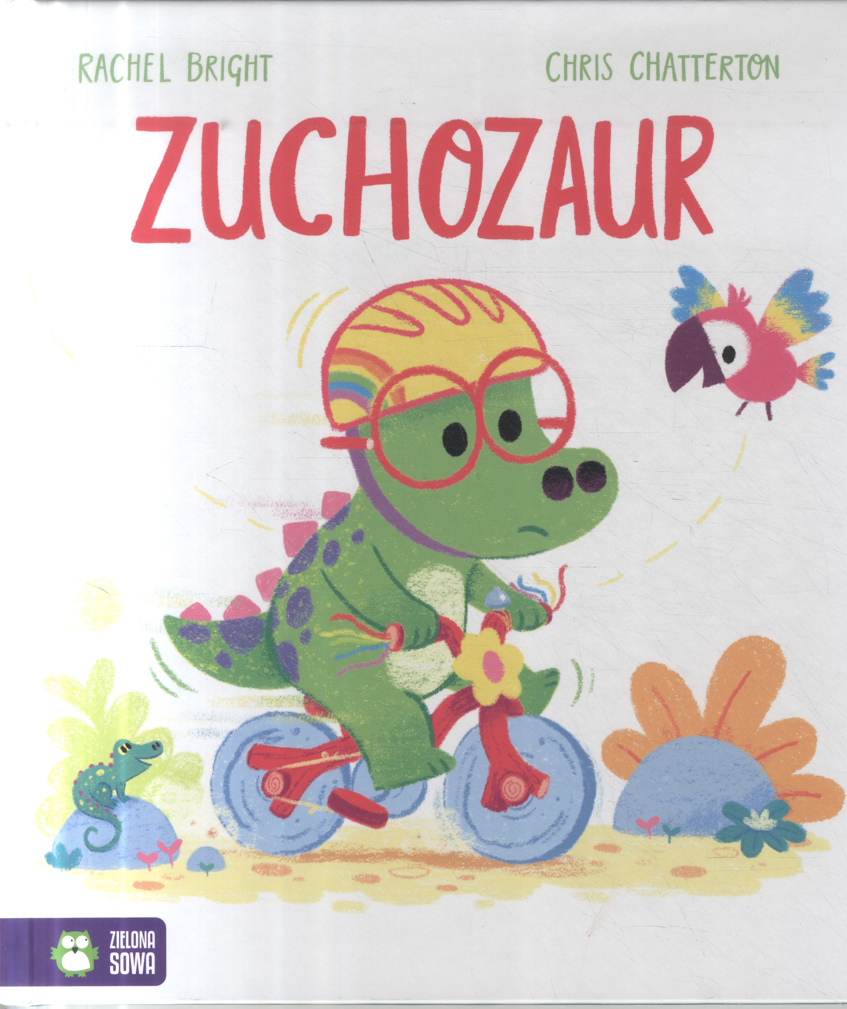 Zuchozaur dostaje pierwszy rower i nie może się wprost doczekać, kiedy pojedzie na nim na przejażdżkę z przyjaciółmi. Siada na siodełko i próbuje ruszyć… ale pojazd się chwieje i maluch spada na ziemię. Znowu wsiada na rower, rusza i… znowu się przewraca! Nie potrafi na nim jeździć. Gdy dinozaur jest gotów się poddać, przyjeżdża babcia. Opowiada mu historię o tym, że jeśli naprawdę się czegoś pragnie, nie wolno się poddawać. Mądre słowa dinobabci dodają malcowi odwagi. "Zuchozaur" to uroczo zilustrowana, zabawna opowieść, która pokaże najmłodszym, że początki często bywają trudne. Kiedy robimy coś po raz pierwszy, zazwyczaj nie wychodzi nam to tak, jak chcemy. Jednak niepowodzenie wcale nie oznacza, że coś nam się nie uda – często jest częścią drogi do sukcesu. W serii ukazały się także tytuły "Zmartwiozaur", "Przytulozaur", "Tuptozaur".