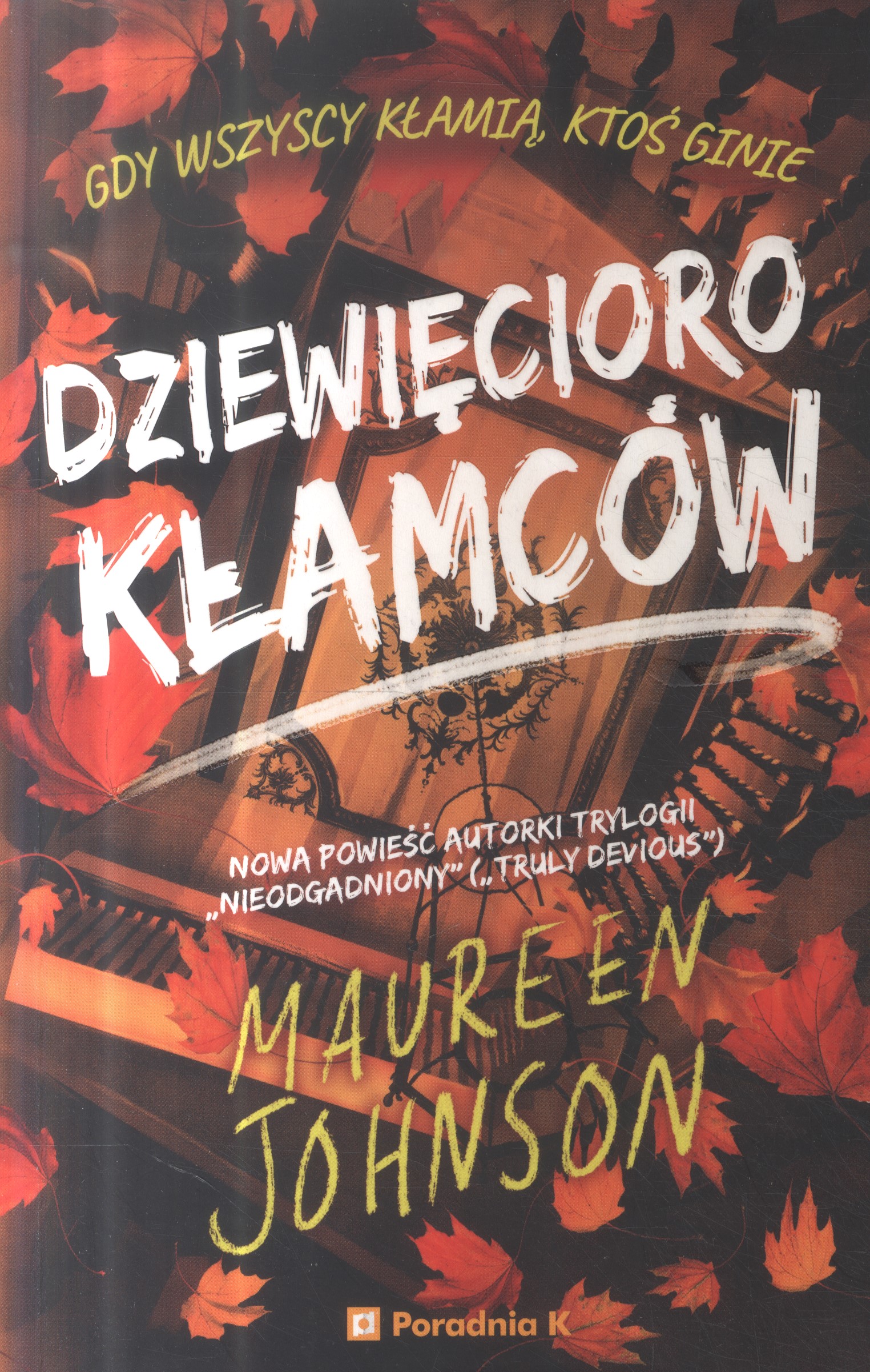 Dziewięcioro kłamców / Maureen Johnson ; przełożył Paweł Łopatka. - Wydanie I. - Warszawa : Poradnia K, copyright 2023. - 431, [1] strona : ilustracje ; 21 cm.