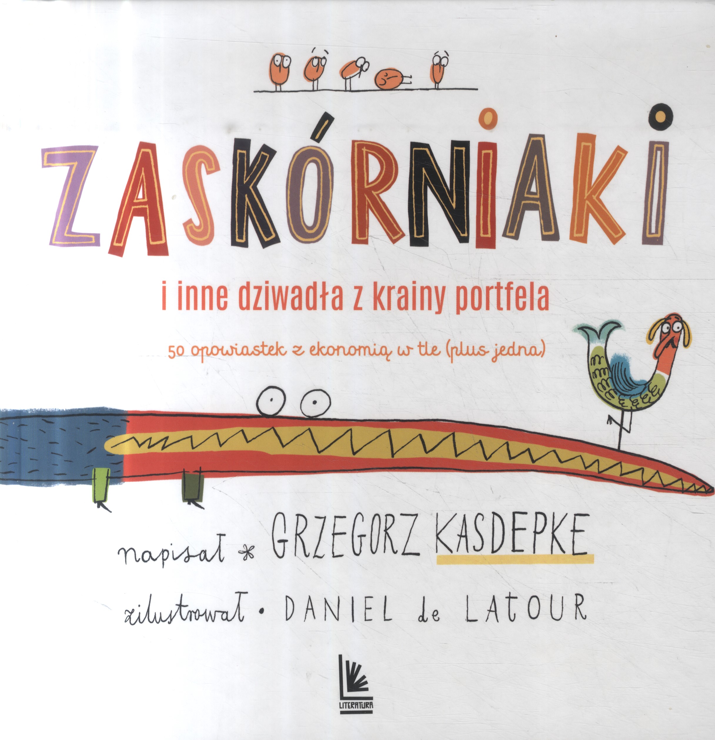 W książce "Zaskórniaki" Popyt i Podaż to bliźniaki uwielbiające huśtawkę. Bujają się bez końca: góra, dół, góra, dół. Polisa przypomina trochę dywan, na której chyba chętnie rozłożyłaby się Emerytura, bo już ledwo powłóczy nogami, biedaczka. Tak, ta książka aż kipi od dziwnych stworów, których znaczenie po każdej przygodzie objaśnia ekonomista. [Nota Wydawcy]
