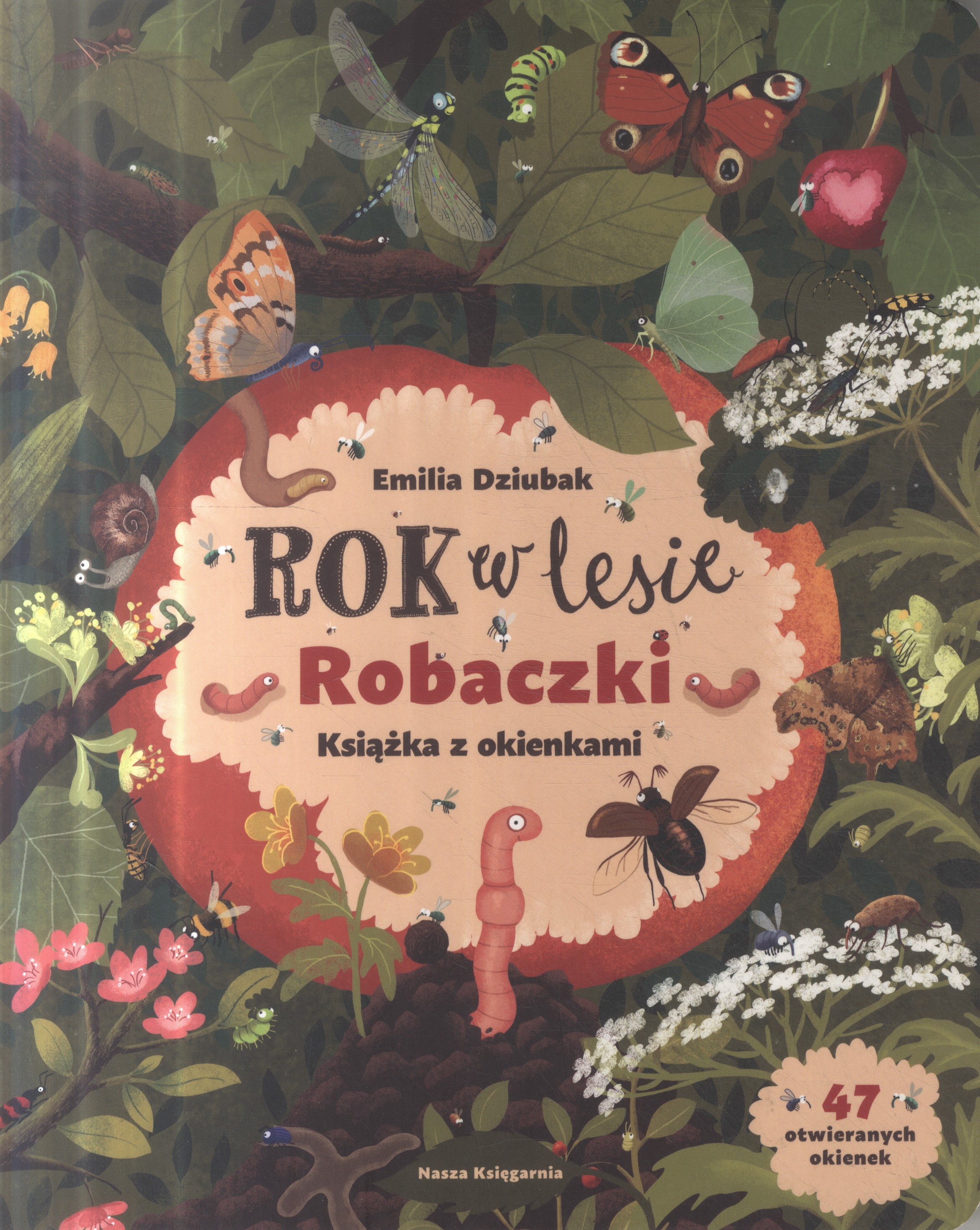 W lesie mieszka bardzo dużo najróżniejszych żyjątek. Nie zawsze widać, co robią w swoich domkach, ale dzięki tej książce wreszcie je poznacie! Otwórzcie prawie 50 okienek, by zajrzeć do mrowiska, do ula i pod korę drzewa. Zobaczcie, jakie nietypowe schronienie ma larwa chruścika, i odwiedźcie dom leśniczego, w którym jest coraz więcej nieproszonych gości... Zaobserwujcie przemianę poczwarki w motyla, poszukajcie wszędobylskich much i prześledźcie pełne grozy sceny z pająkiem lub pijawką w roli głównej. A potem sprawdźcie, jak kamuflują się motyle i jakie owady można spotkać nocą! W świecie robaczków tyle się dzieje, że książkę można oglądać godzinami. Zapraszamy do zabawy! [Wydawca]