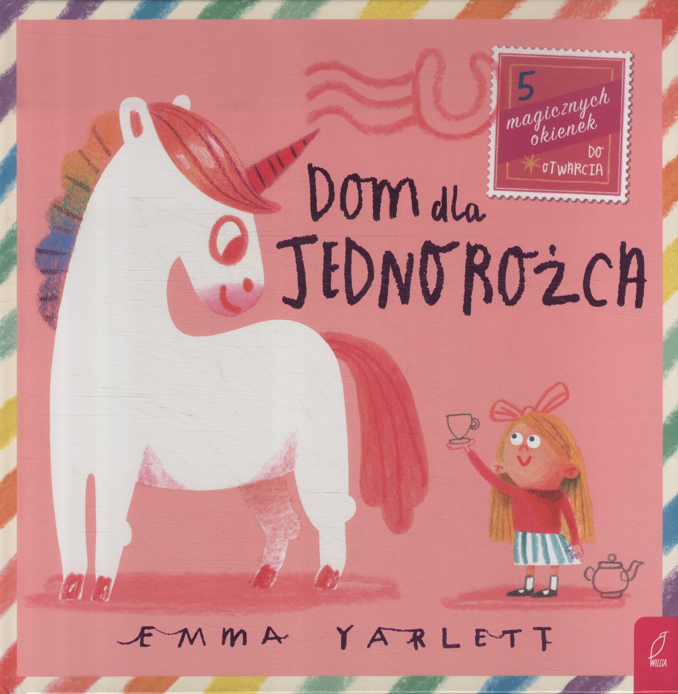 Czy wiesz, jak trudno znaleźć dom dla… jednorożca? A jeszcze trudniej taki, który będzie naprawdę idealny! Gdy pewnego dnia mała dziewczynka spotyka zagubionego, magicznego przybysza, postanawia pomóc mu w znalezieniu nowego miejsca na ziemi. Tak rozpoczyna się pełna uroku i fantazji opowieść „Dom dla jednorożca” autorstwa Emmy Yarlett – znanej i cenionej twórczyni pięknych książek dla dzieci. To niezwykła historia o przyjaźni, zaufaniu i wspólnej przygodzie. Razem z bohaterką i jednorożcem czytelnik odwiedza przeróżne miejsca i poznaje barwne postacie. To interaktywna książka z 5 magicznymi okienkami do otwarcia.