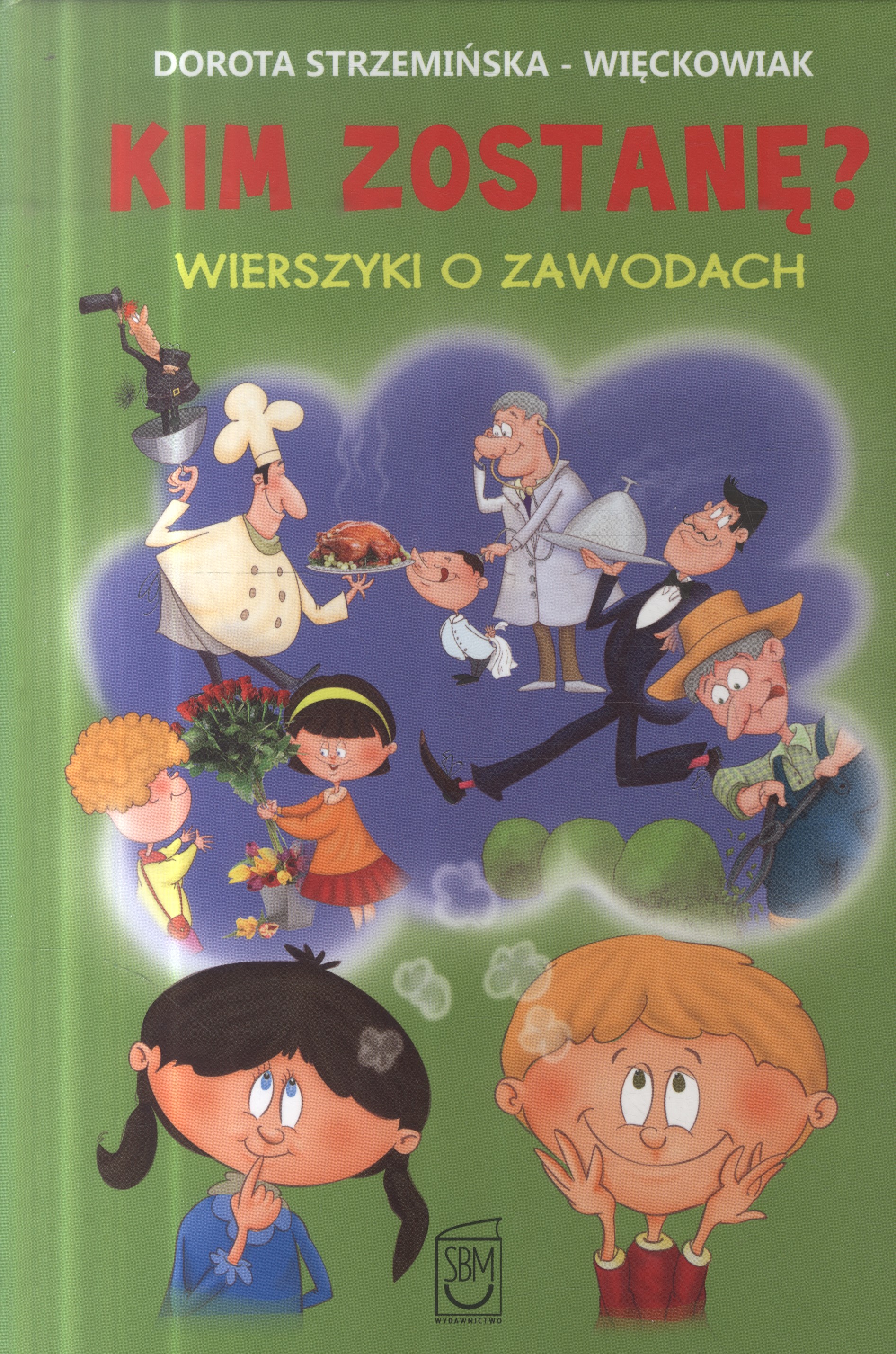 Kim zostanę? : wierszyki o zawodach / Dorota Strzemińska-Więckowiak ; ilustracje: Dariusz Wanat. - Wydanie I. - Warszawa : SBM Wydawnictwo, copyright 2014. - 64 strony : ilustracje ; 25 cm.