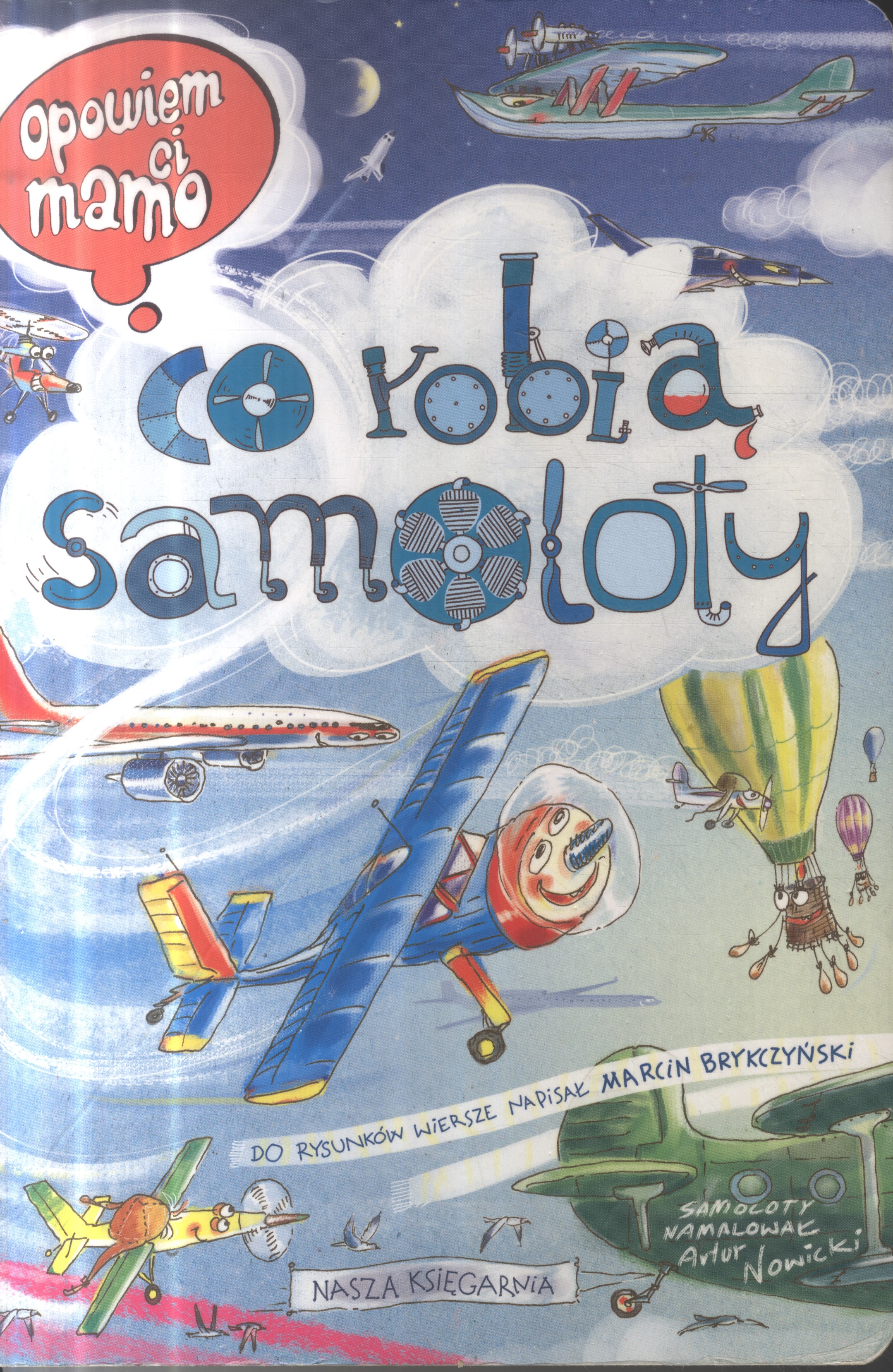 Pozycja w popularnej serii „Opowiem ci mamo”, narysowana z humorem przez Artura Nowickiego, tym razem pozwoli się wybrać w podniebną podróż i poznać bogaty świat odrzutowców, myśliwców, helikopterów i innych aeroplanów.