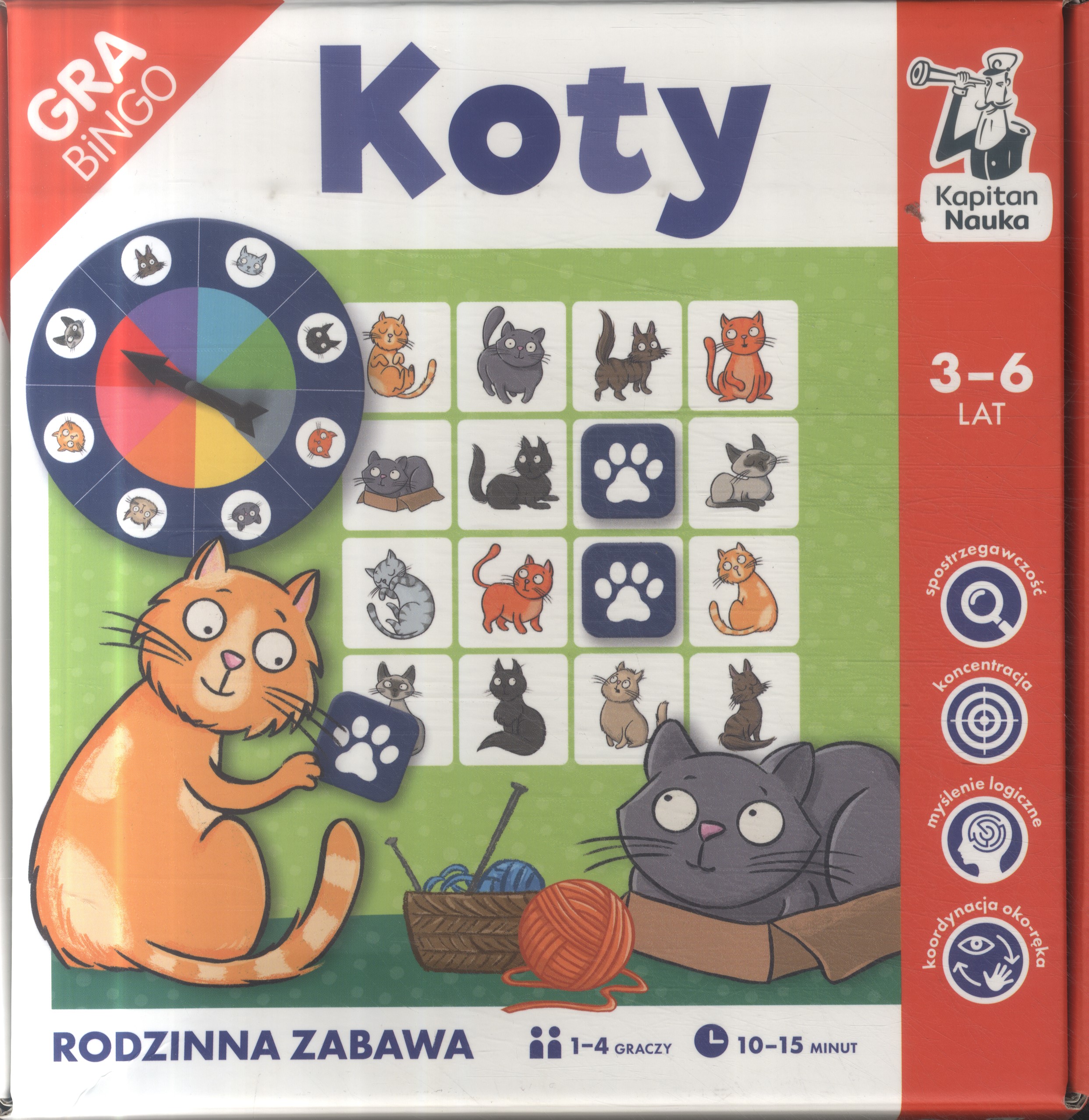 Sympatyczne koty szaleją na planszach, a gracze trenują koncentrację i szybkość. Uczą się ropoznawać szczegóły, nazywać kolory i działać strategicznie. Kto pierwszy krzyknie BINGO, zdobędzie puchar!