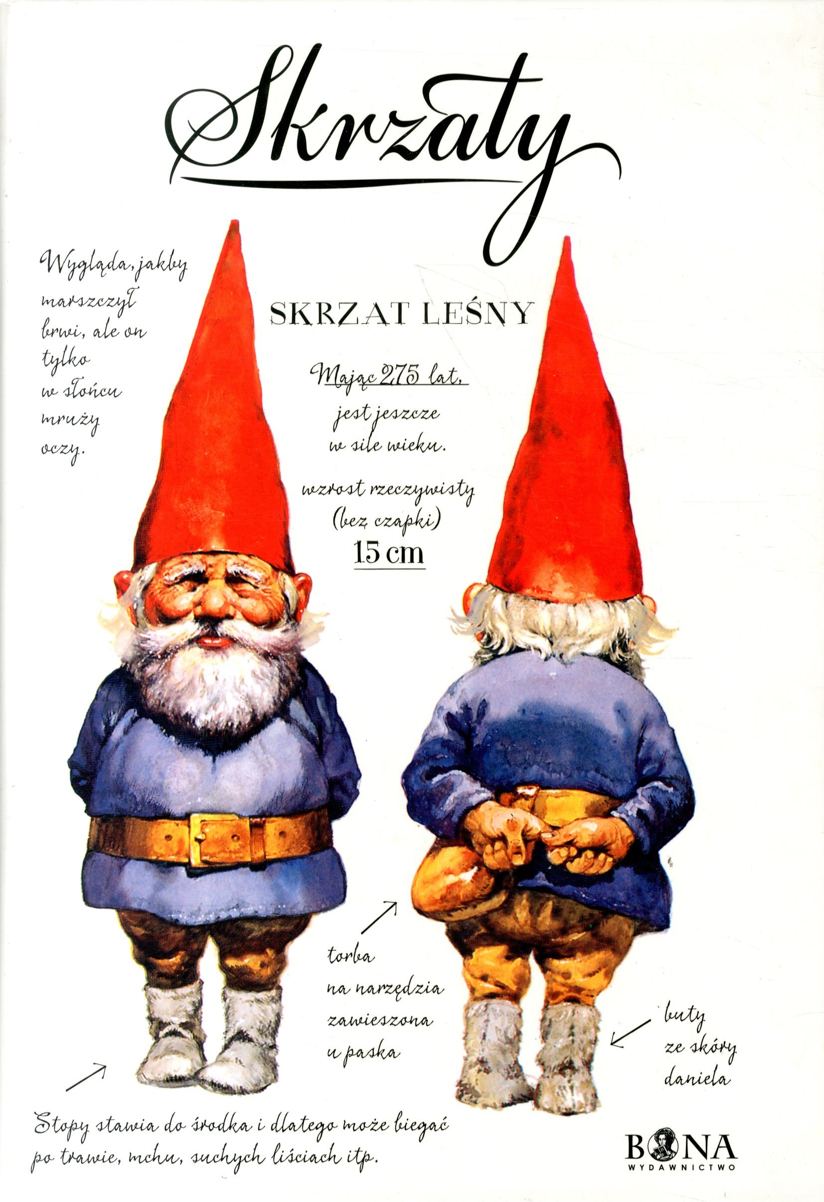 Czy wiecie, gdzie w Polsce żyją skrzaty? Nie? To otwórzcie książkę na stronie dziesiątej i spójrzcie na mapę. A czy wiecie, ze skrzat jest siedem razy silniejszy od człowieka? Albo że na dzień dobry i do widzenia skrzaty pocierają się nosami? I że na świat zawsze przychodzą jako bliźnięta? O tym wszystkim i o wielu innych rzeczach dowiecie się z książki, której autorami są dwaj przyjaciele Holendrzy: malarz i rysownik Rien Poortvliet i naukowiec, pisarz i badacz Wil Huygen. Przez ponad dwadzieścia lat obserwowali i studiowali życie i obyczaje skrzatów i wyniki ich pracy prostują wiele błędnych, a rozpowszechnionych wyobrażeń na temat tych malutkich ludzików, których nie należy mylić z trollami, elfami, chochlikami czy koboldami. Książka opisuje ważniejsze wydarzenia z historii skrzatów i wyjawia różne tajemnice. I tak na przykład skrzat, który znał Rembrandta, ukazuje mistrza przy pracy, a przyjaciel Mozarta [jeszcze w pełni sił, bo ma zaledwie czterysta lat] dotąd nie może zapomnieć ostatniej drogi wielkiego kompozytora. Poznacie również tajemnicę długowieczności skrzatów i dowiecie się, dlaczego nie zdejmują nigdy swych czerwonych spiczastych czapek.