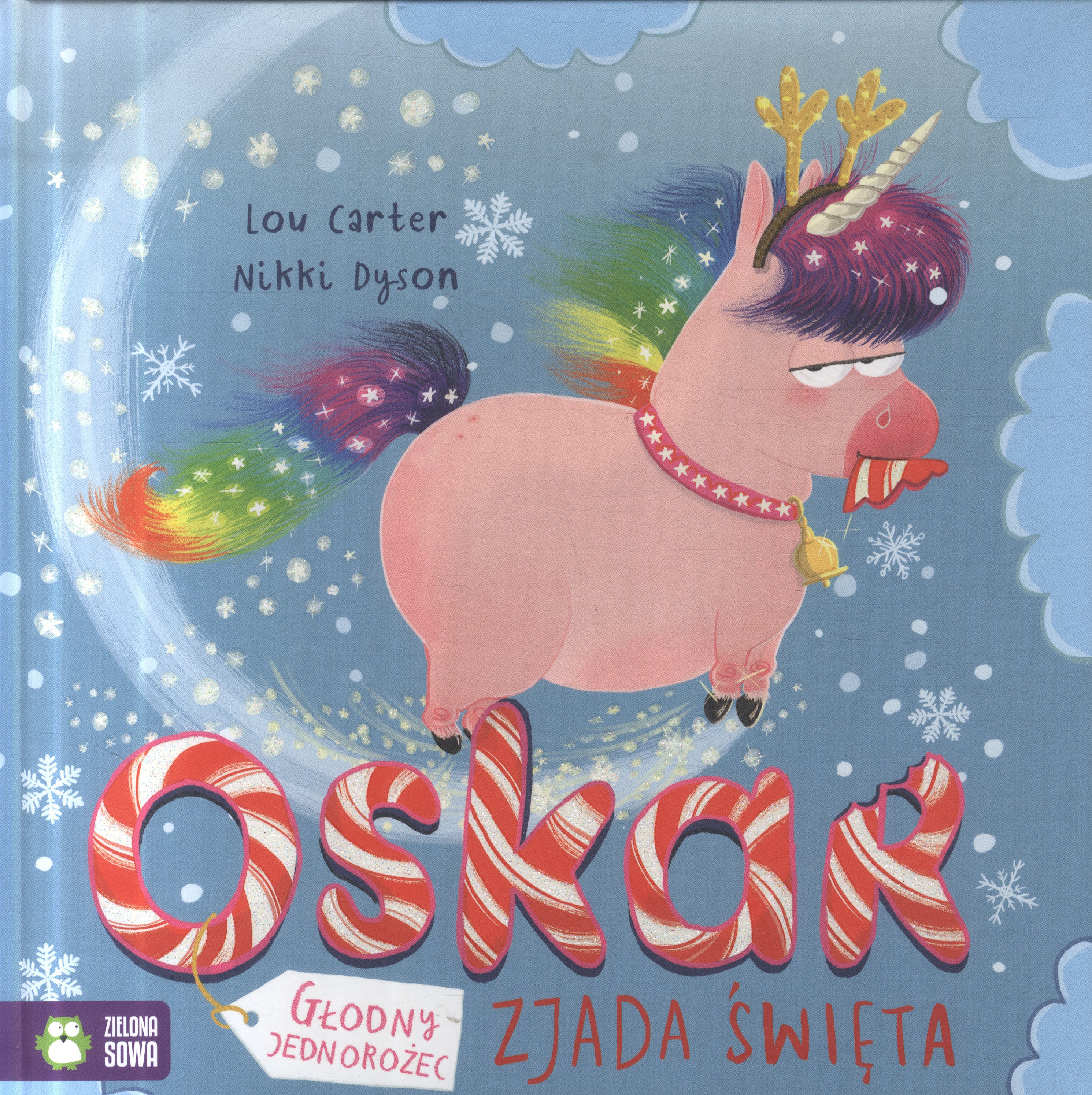 Czy pamiętacie baaardzo głodnego jednorożca? Tym razem Oskar czai się na świąteczne ozdoby, i nie tylko na nie… Głód nie opuszcza Oskara nawet w Wigilię. Zjadł już choinkę, prezentowe skarpety i zabrał się za same prezenty! Ale na całe szczęście oszczędził magiczną karmę, która pozwala reniferom latać. Czy aby na pewno?