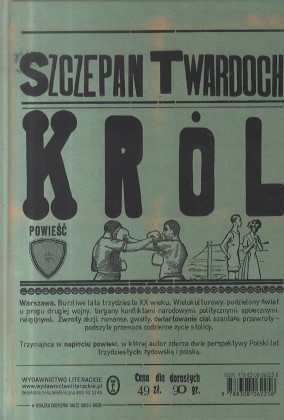 Szczepan Twardoch, Król Powieść Szczepana Twardocha „Król”to jedna z najgłośniejszych premier jesieni 2016 r. i czwarty tytuł tego autora w naszych zbiorach. Książka jest chwilami brutalna i pełna wulgaryzmów, a jednak czyta się ją wartko i docenia niewątpliwy talent narracyjny pisarza. Ciekawość budzi już okładka stylistyką przypominająca wydania utworów przedwojennych. Akcja toczy się w Warszawie, głównie w okolicach Nalewek,