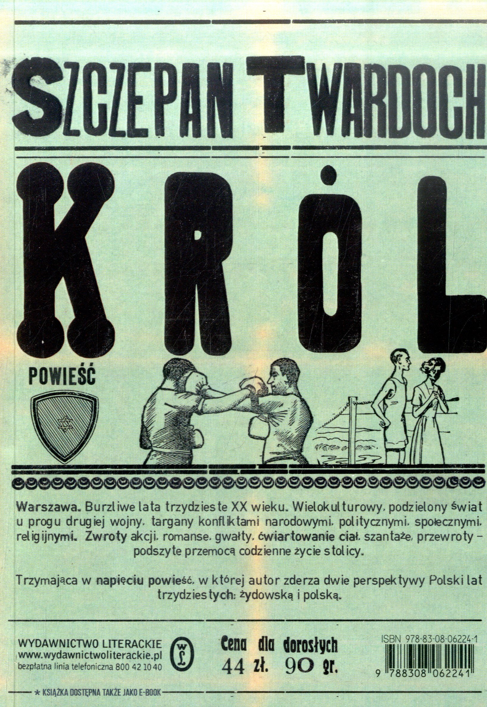 (...)Żydów. Jest to czteroosobowa rodzina, której głowa rodziny prowadzi własny sklep, który przynosi znikome zyski. Pewnego dnia w lokalu Bersztajna pojawia się Szapiro, który żąda haraczu w imieniu Kuma Kaplicy. Przedsiębiorca nie ma pieniędzy, żeby zapłacić w pierwszym tygodniu, ale również w drugim, co jest tragiczne w skutkach. Jakub Szapiro pojawia się w jego mieszkaniu i na oczach rodziny wyciąga go z domu, do którego już nigdy nie powróci. Młody siedemnastoletni Mojsze postanawia coś zrobić ze swoim życiem i tego samego dnia opuszcza swój dom pozostawiając w nim matkę i brata. Nie wiedząc, co dokładnie stało się z jego ojcem, przyłącza się do Jakuba Szapiry, który nie widzi w tym problemu. Mojsze podejrzewa, a wręcz jest pewny, że bokser zabił jego brata, ale nie przeszkadza mu to. Gdy tylko dostaje się pod skrzydła pierwszego urki Kuma Kaplicy chłopak poznaje lepsze życie. Jada w najlepszych lokalach Warszawy, jeździ nowoczesnym autem, odwiedza miejsca, o których wcześniej nie miał pojęcia, ale nie miał prawa wstępu. Nawet zamieszkał wraz z Jakubem i jego rodziną. Mojsze uczestniczył we wszystkim co Szapiro robił. Był jak jego cień. Często znajdował się w niebezpiecznych miejscach oraz sytuacjach. Historia opisana w książce wydaje się, że przedstawiona jest z perspektywy Mojsze Bernsztajna, który swoje wspomnienia przeplata je z teraźniejszością. Autor zastosował tu ciekawy twist, lecz mam wrażenie, ze niekoniecznie udany. Choć jest to ciekawy zabieg, mi osobiście przeszkadzał, gdyż mam wrażenie, że w niektórych momentach był niepotrzebny, a wręcz nietrafiony. Autor poruszył temat poważny, a mianowicie porachunki pomiędzy Warszawą polską, a żydowską. Jest to temat dość ciężki, a odnoszę wrażenie, że autor potraktował go po macoszemu i niestety przedłożył porachunki gangsterskie nad ten ważny temat. W książce pojawiają się również opisy bijatyk, morderstw a także scen pełnych seksu. Są krótkie, ale intensywne i dynamiczne. Król to moje pierwsze spotkanie z twórczością Szczepana Twardocha. Mam bardzo mieszane uczucia, ale z pewnością to nie będzie moje ostatnie spotkanie z autorem. Czytałam wiele dobrego o tym autorze, a zwłaszcza o jego innych książkach, więc z pewnością za jakiś czas powrócę do Twardocha i mam nadzieję, że następnym razem się nie zawiodę. To spotkanie uważam za bardzo średnie. Na długo w pamięć mi nie zapadnie.