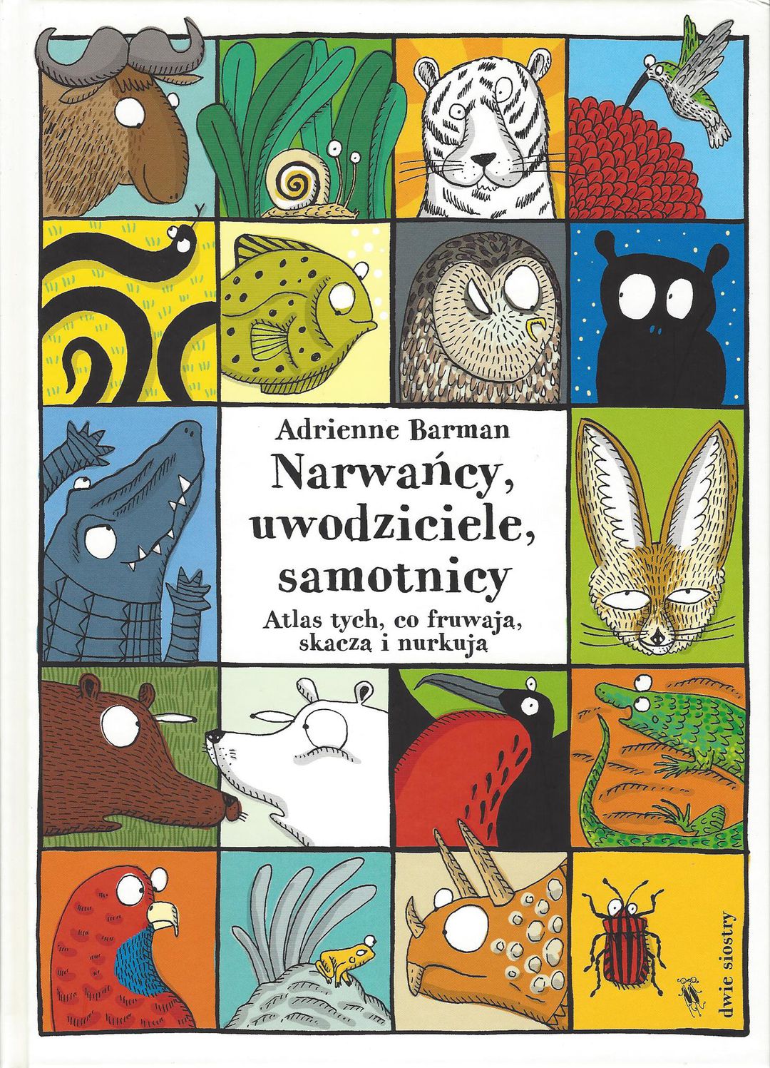 Zabawny i zaskakujący obrazkowy atlas zwierząt: ponad 600 gatunków z całego świata podzielonych na 40 zwariowanych rodzin. Giganci i liliputy. Uwodziciele i samotnicy. Truciciele i wyklęci. Mistrzowie kamuflażu i gladiatorzy. Specjaliści od architektury i nocne marki. Błękitni, szmaragdowi, cytrynowi, różowiutcy, pręgowani. Czyli o zwierzętach - zupełnie inaczej. Bo nie pochodzenie ani przynależność gatunkowa są tu ważne. Liczą się charakter, możliwości, upodobania, rozmiar, kolor - i wiele innych zaskakujących cech. Daleki od stereotypowych ujęć, znanych z lekcji biologii, ten obrazkowy atlas sprawi, że już nigdy nie będziesz patrzeć na zwierzaki tak samo, jak dotąd. [Wydawnictwo]