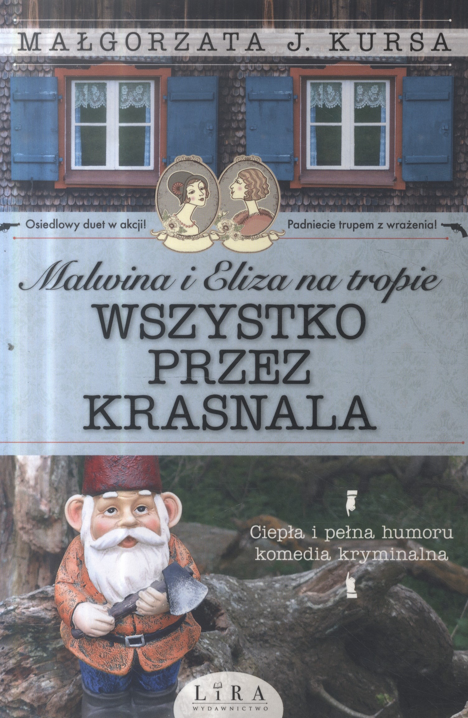 "Wszystko przez krasnala" to drugi tom cyklu Malwina i Eliza na tropie. Nie zdążyłam jeszcze przeczytać pierwszego ("Szczęśliwa nieboszczka"), ale okazuje się, że spokojnie można czytać je nie po kolei, to bowiem całkiem odrębne historie, połączone postaciami głównych bohaterek.