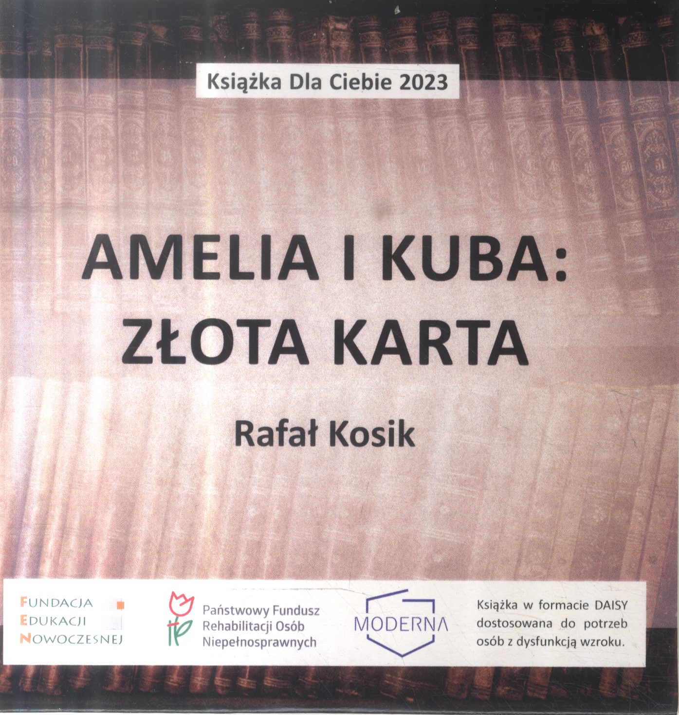 Książka w formacie DAISY dostosowana do potrzeb osób z dysfunkcją wzroku, wydana przez Fundację Edukacji Nowoczesnej z Warszawy oraz Fundację "Moderna" z Jeleniej Góry w ramach projektu "Książka dla Ciebie 2023".