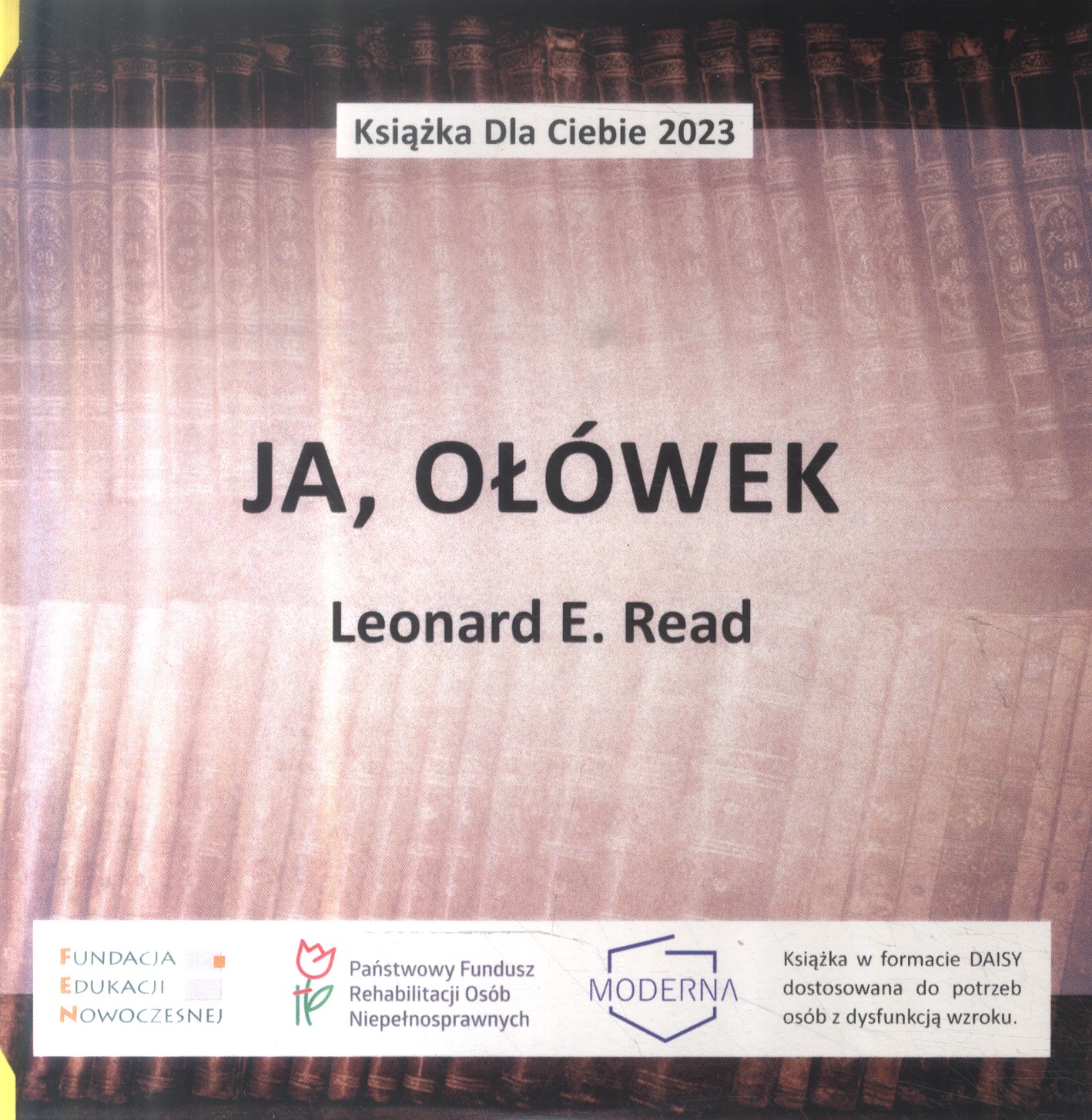 Książka w formacie DAISY dostosowana do potrzeb osób z dysfunkcją wzroku, wydana przez Fundację Edukacji Nowoczesnej z Warszawy oraz Fundację "Moderna" z Jeleniej Góry w ramach projektu "Książka dla Ciebie 2023".