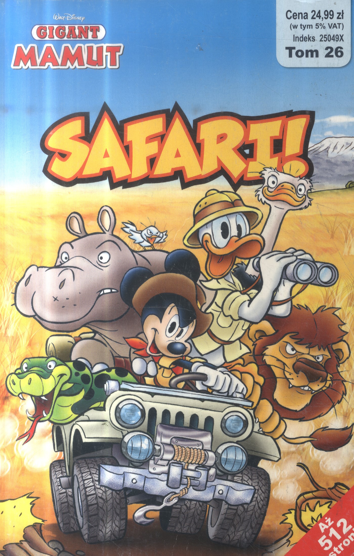 Zawiera: Łowy na grubego zwierza / scenariusz: Carlo Chendi ; rysunki: Massimo De Vita. Ukryta kopalnia / scenariusz: Bruno Sarda ; rysunki: Marco Mazzarello. Trzy kaczory i krokodyl / scenariusz: Bruno Sarda ; rysunki: Alessandro Gottardo. Przy ognisku / scenariusz: Giorgio Figus ; rysunki: Abramo Leghziel. Zaginiona ekspedycja / scenariusz: Casty ; rysunki: Giorgio Cavazzano. W sercu Afryki / scenariusz: Guido Martina ; rysunki: Giovan Battista Campi. Powrót do krainy małp / scenariusz: Guido Martina ; rysunki: Frances Bargada Studio. Myszy, tama i krokodyl / scenariusz: Jennifer Steel i Keith Knight ; rysunki: Antoni Bancells. Inny sposób / scenariusz: Rudy Salvagnini ; rysunek: Lara Mollinari. Przywieziony z dżungli / scenariusz: Jerry Siegel ; rysunki: Guido Scala. Na ostatnich rogach / scenariusz: Spectrum Associates ; rysunki: Mario. Genialny pomysł / scenariusz: Rudy Salvagnini ; rysunki: Lara Molinar. Moc kwiatów / scenariusz i rysunki: Guido Scala. Mój przyjaciel goryl / scenariusz: Howard Swift ; rysunki: Jaime Diaz Studio. Operacja słonie / scenariusz: Rodolfo Cimino ; rysunki: Alessandro Gottardo. Przy ognisku / scenariusz: Giorgio Figus ; rysunki: Abramo Leghziel. Złoto i skamieliny / scenariusz: Angelo Palmas ; rysunki: Massimo De Vita. Prawo dżungli / scenariusz: Rudy Salvaghnini ; rysunki: Lara Molinari. Cztery w jednym / scenariusz: Carlo Panaro ; rysunki: Marco Meloni.