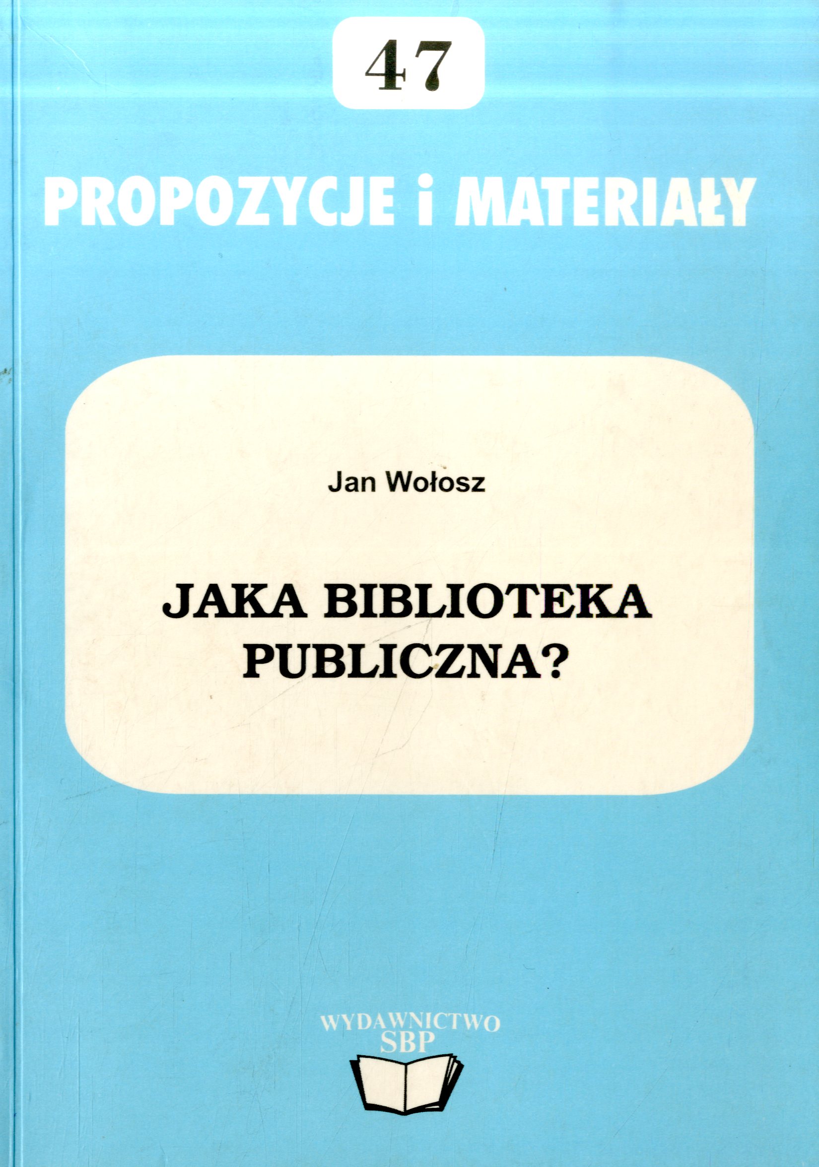 Jaka biblioteka publiczna? / Jan Wołosz. - Warszawa : Wydaw. SBP, 2001. - 148, [3] s. ; 21 cm.