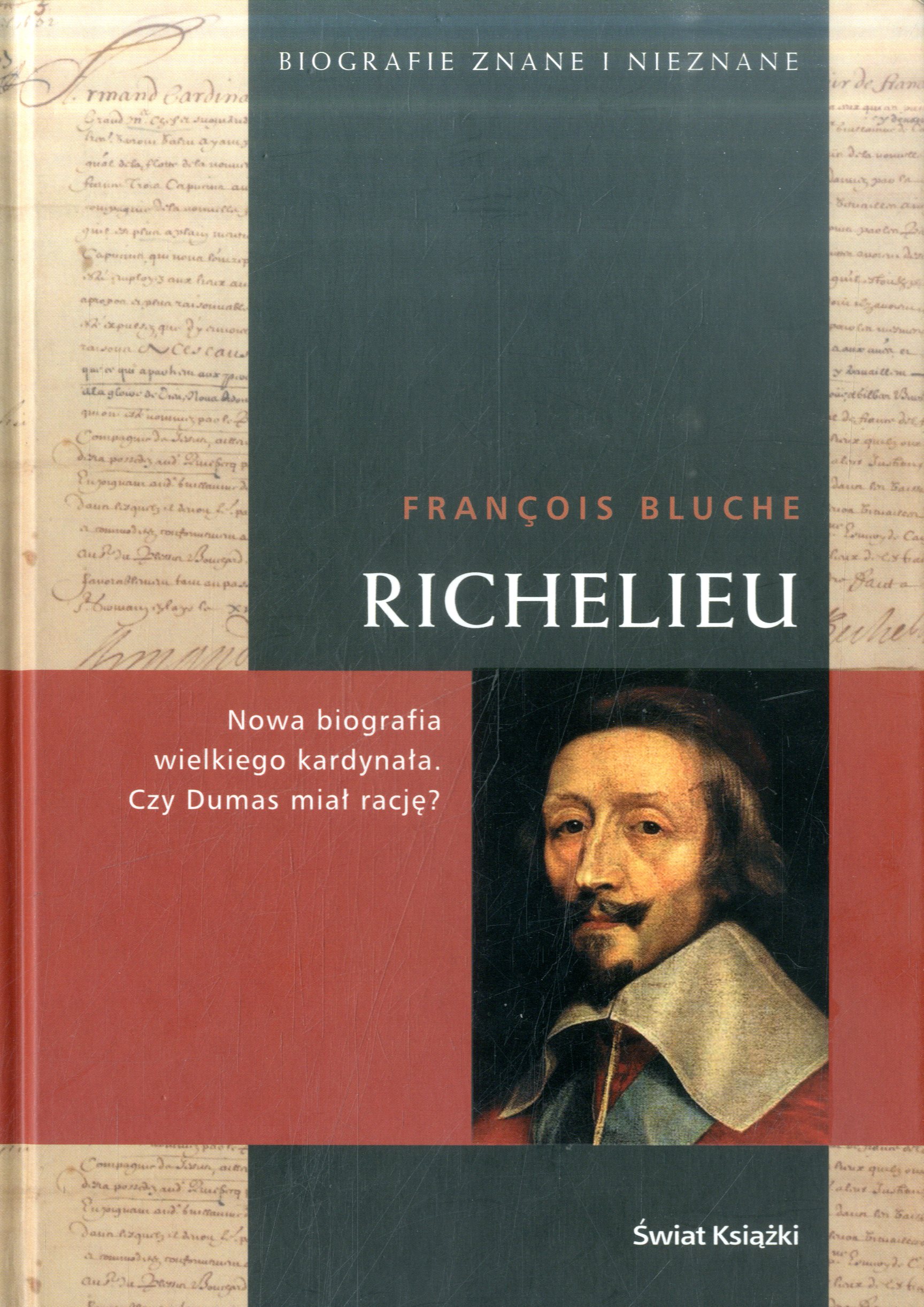 Czy Dumas miał rację? Czy naprawdę wiemy jaki był kardynał Richelieu, jeden z twórców wielkości Francji? Wspominamy go jako "człowieka w czerwieni", postać bezwzględną, podstępną i okrutną - tak jak opisywał go Dumas w "Trzech Muszkieterach". Przypisuje mu się pokonanie La Rochelle (słusznie) i wywalczenie naturalnych granic państwa (niesłusznie). Przypisuje mu się też zwycięstwo nad Domem Austrii (co jest prawdą) i cyniczny kult racji stanu (co prawdą nie jest). Książka Francois'a Bluche'a pozwala na zobaczenie postaci mniej przerażającej niż jej własna legenda, choć nie zawsze wzbudzającej zaufanie, niepozbawionej cech ludzkich, a nawet poczucia humoru. Założyciel Akademii Francuskiej to nie tylko bezlitosny polityk.