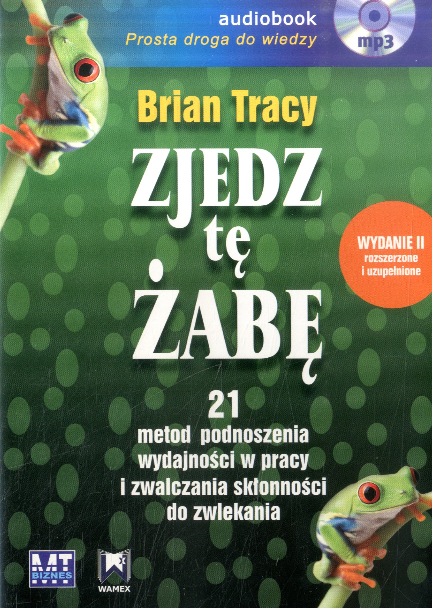 Zjedz tę żabę to książka dla ludzi biznesu. Ta przekonująca metafora, „ogromna żaba” czekająca na zjedzenie, to twoje największe, najważniejsze zadanie, z którego realizacją będziesz prawdopodobnie zwlekał, jeśli nie zajmiesz się nim od razu. Jest ona również tym zadaniem, które w danym momencie może mieć najkorzystniejszy wpływ na twoje życie i pomóc ci w szybkim osiągnięciu oczekiwanych rezultatów. Rozpoczęcie pracy od połknięcia „żaby” gwarantuje przez cały dzień poczucie zadowolenia wynikającego ze świadomości, że już nic gorszego nie może ci się dzisiaj przytrafić.