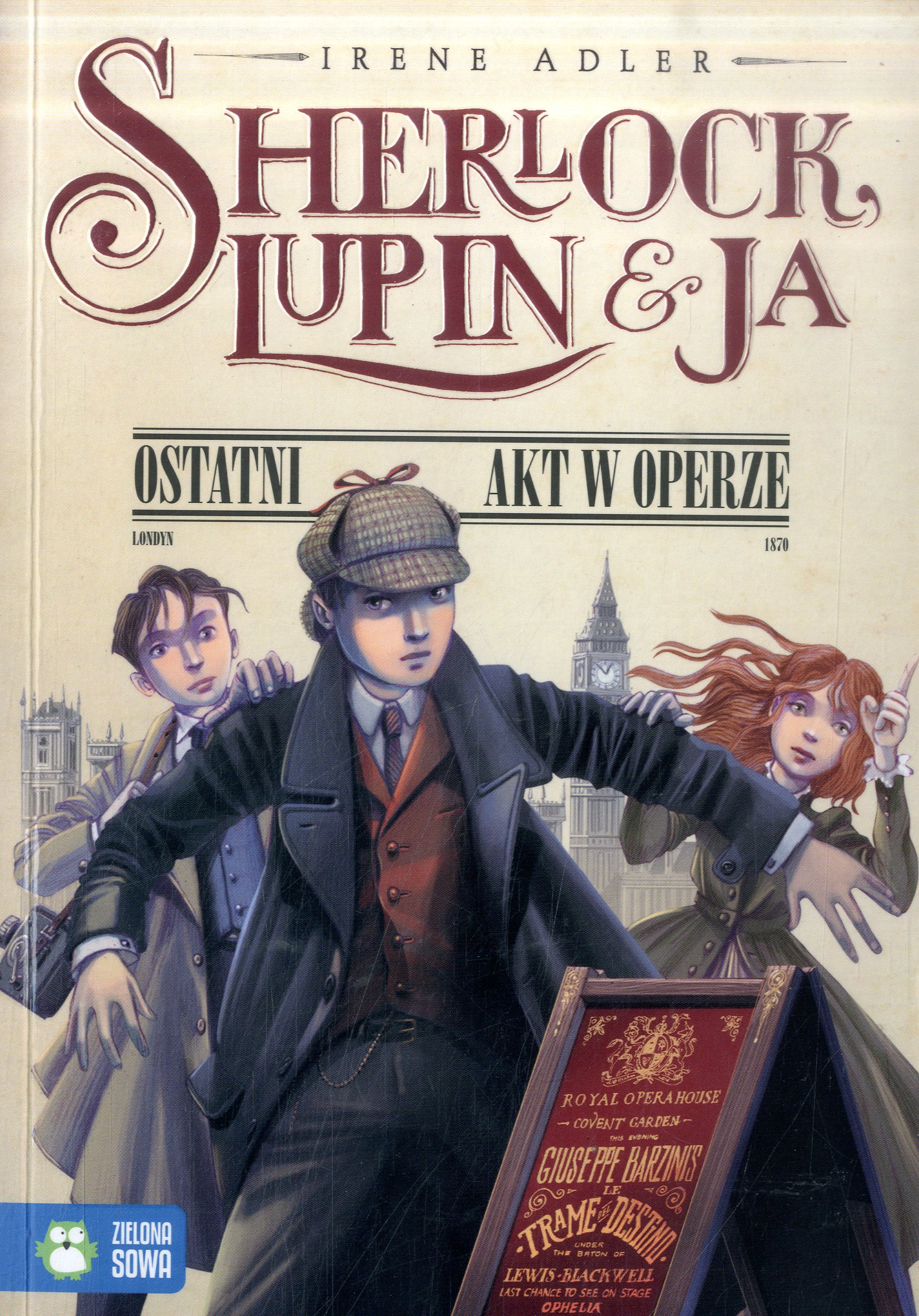 Tytuł: „Sherlock, Lupin i ja. Ostatni akt w operze” Tytuł oryginału: „Ultimo atto al Teatro dell'Opera” Autor: Irene Adler Wydawnictwo: Zielona Sowa Cykl: Sherlock, Lupin i ja (tom II) Ilustracje: Iacopo Bruno Tłumaczenie: Katarzyna Kolasa-Garibotto Korekta: Magdalena Wosiek, Joanna Łapińska Wydanie: I Oprawa: miękka (ze skrzydełkami) Liczba stron: 290 Data wydania: 28.03.2014 ISBN: 978-83-7895-817-8 Źródło – skrzydło książki.