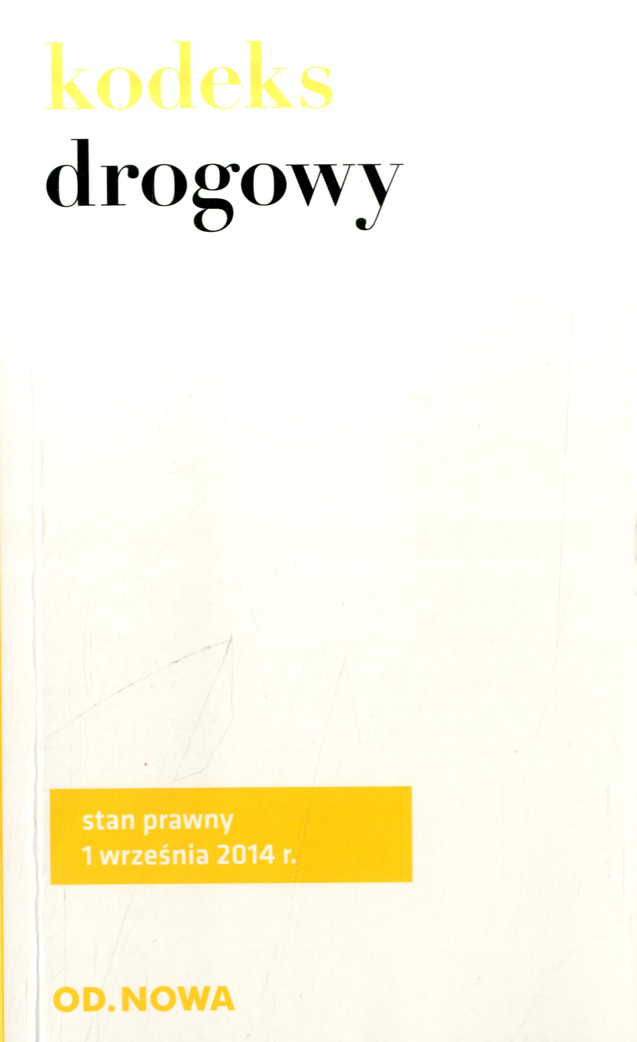 Kodeks drogowy / [oprac. red. i merytoryczne Lech Krzyżanowski]. - Wyd. 6., stan prawny 1 września 2014 r. - Bielsko-Biała : "Od.Nowa", dr. 2014. - 458, [2] s. : il. (w tym kolor.) ; 18 cm.