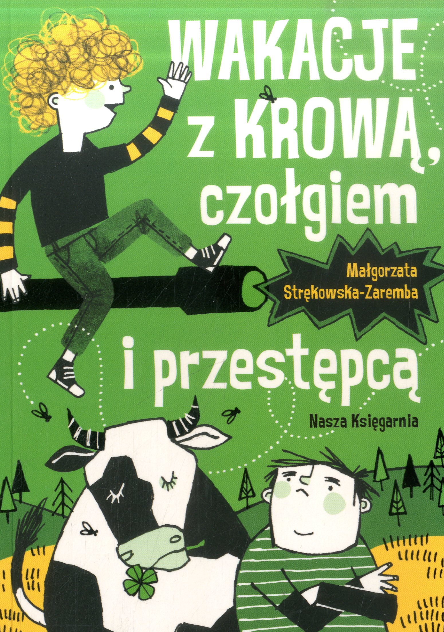 Najlepsi przyjaciele bardzo się starają, aby nie spędzić wakacji na wsi… Uważają, że zanudzą się tam na śmierć. Niestety, wyjazd dochodzi do skutku. Jednak wszystko wskazuje na to, że nie będzie taki nudny. Za chłopcami podąża przestępca! "Wakacje z krową, czołgiem i przestępcą" opowiadają z humorem o przygodach Kuby i Wojtka, ale podejmują także wiele ważnych tematów takich jak: problemy dzieci z rozbitych rodzin, więź łącząca wnuka i dziadka czy lęk przed odrzuceniem.