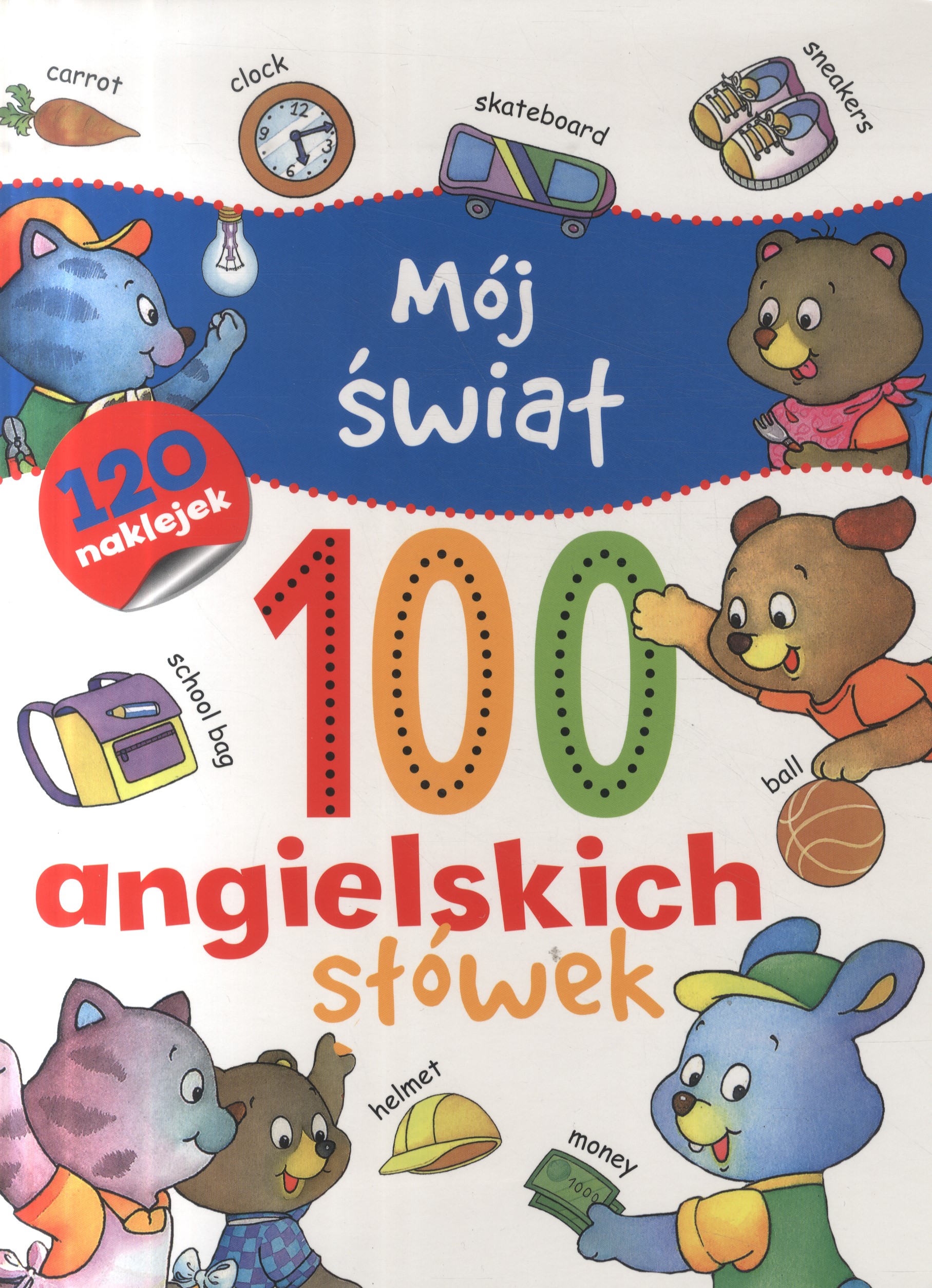 Mój świat : 100 angielskich słówek / [ilustracje: Carmen Busquest]. - Ożarów Mazowiecki : Wydawnictwo Olesiejuk , copyright 2017. - [24] strony, [4] karty tablic : ilustracje ; 32 cm.
