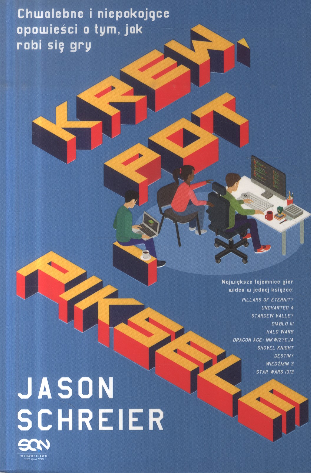 Tworzenie gier komputerowych w dzisiejszych czasach jest często bardziej fascynujące niż efekt końcowy. Jason Schreier zabiera czytelników w niezwykłą podróż za kulisy przemysłu gier wideo, gdzie twórcą może być zespół 600 przepracowanych geeków lub jeden geniusz. Opisując artystyczne wyzwania stojące przed producentami, techniczne bariery, żądania graczy i pracę przypominającą robotę w korporacji, autor dochodzi do wniosku, że każda z gier jest swoistym cudem.