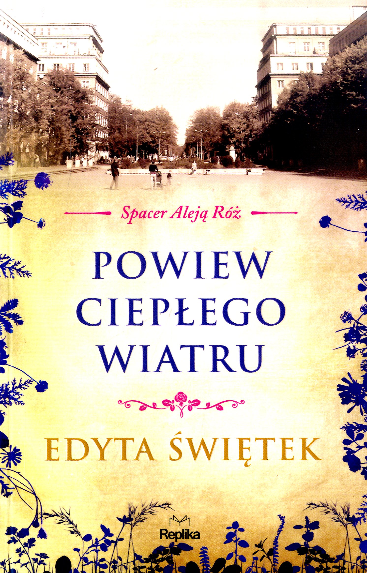 W powieści "Powiew ciepłego wiatru" Edyta Świętek po raz ostatni zabiera czytelników na Spacer Aleją Róż. Tym razem udajemy się na przechadzkę trwającą od końca lat 70 po upadek władzy ludowej. Obywatele zmagają się z uciążliwościami stanu wojennego. W najmłodszej dzielnicy Krakowa regularnie dochodzi do brutalnych starć mieszkańców z jednostkami ZOMO. Rodziny Szymczaków i Pawłowskich płacą wysoką cenę za pragnienie wolności, lecz ich nadzieje i walka w końcu znajdują oczekiwany finał. Pod koniec 1989 roku z alei Róż znika znienawidzony pomnik Lenina, a młodzi ludzie po raz ostatni wciągają w płuca powietrze przesycone gazem łzawiącym. Na tle historycznych wydarzeń płynie codzienne życie obfitujące w zaskakujące wydarzenia. Miłość i nienawiść, narodziny oraz śmierć splatają się mocno ze sobą, tworząc wiarygodny obraz przeciętnej polskiej rodziny.