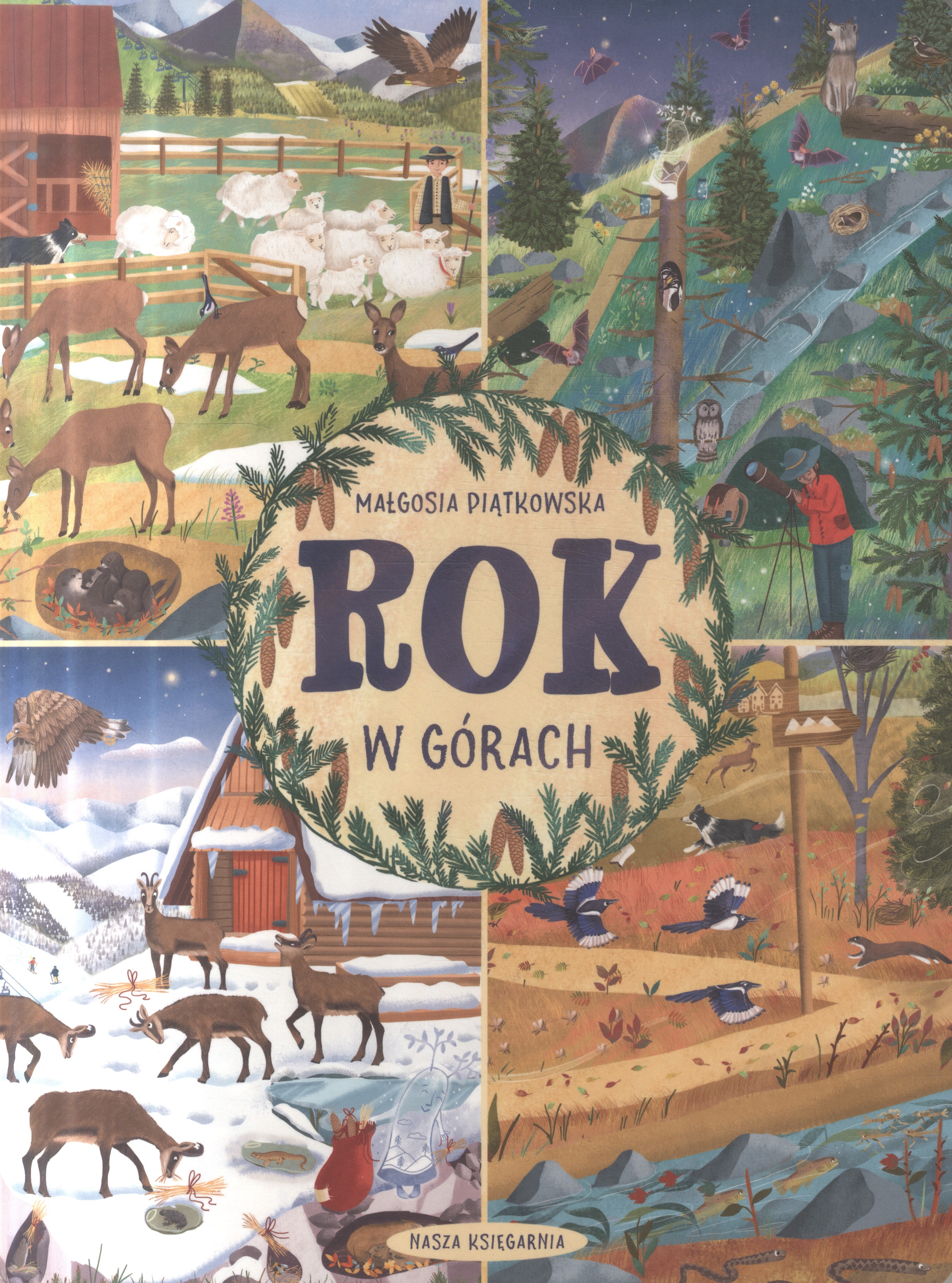 Rok w górach / Małgosia Piątkowska ; [ilustracje Małgosia Piątkowska]. - Wydanie pierwsze. - Warszawa : Nasza Księgarnia, copyright 2020. - [30] stron : ilustracje ; 31 cm.
