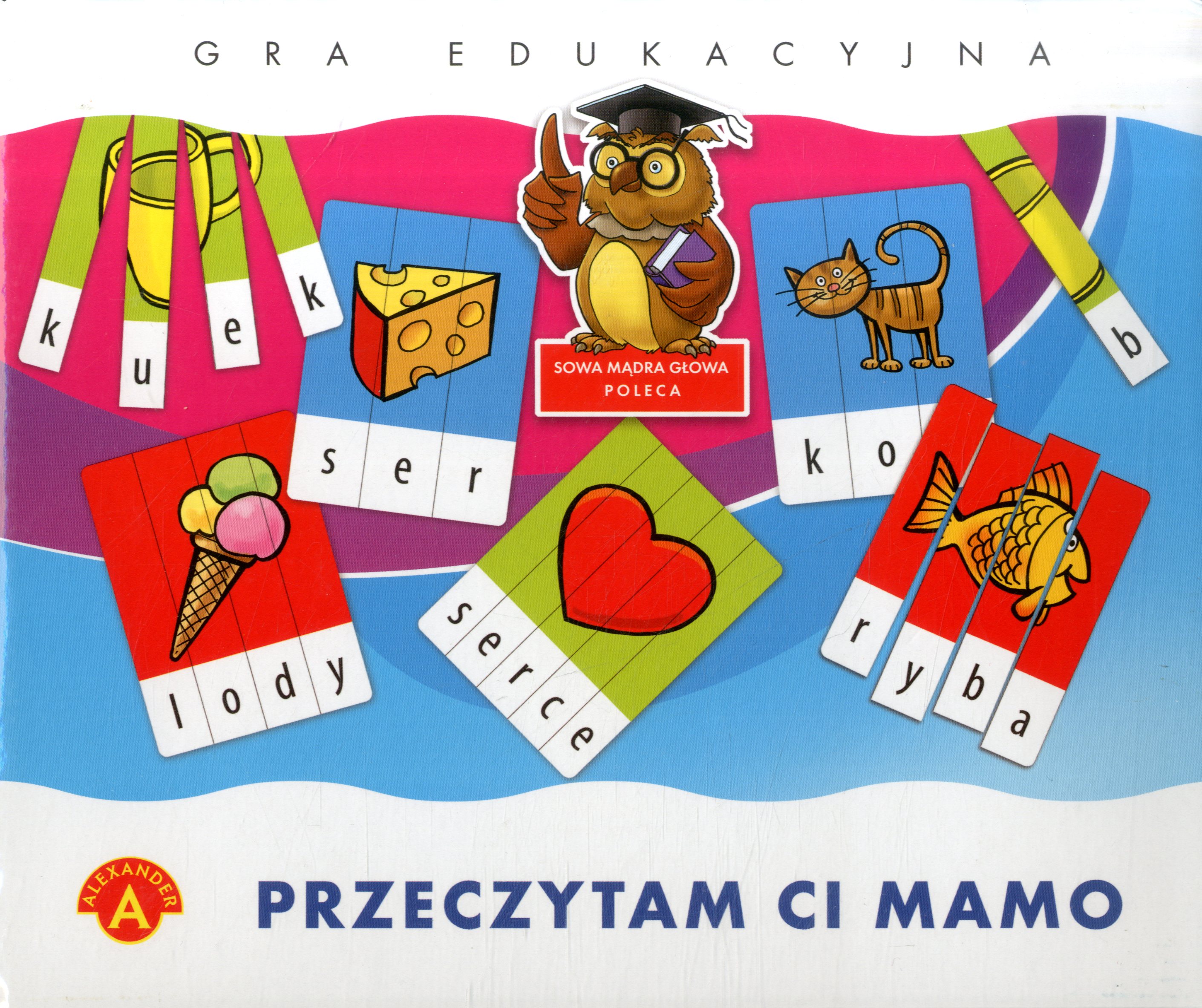 Przeczytam Ci mamo : gra edukacyjna. - Chwaszczyno : Alexander [200?]. - 1 pudełko : kartoniki ; wym. pudełka 24,5x20,5x5 cm + instrukcja.