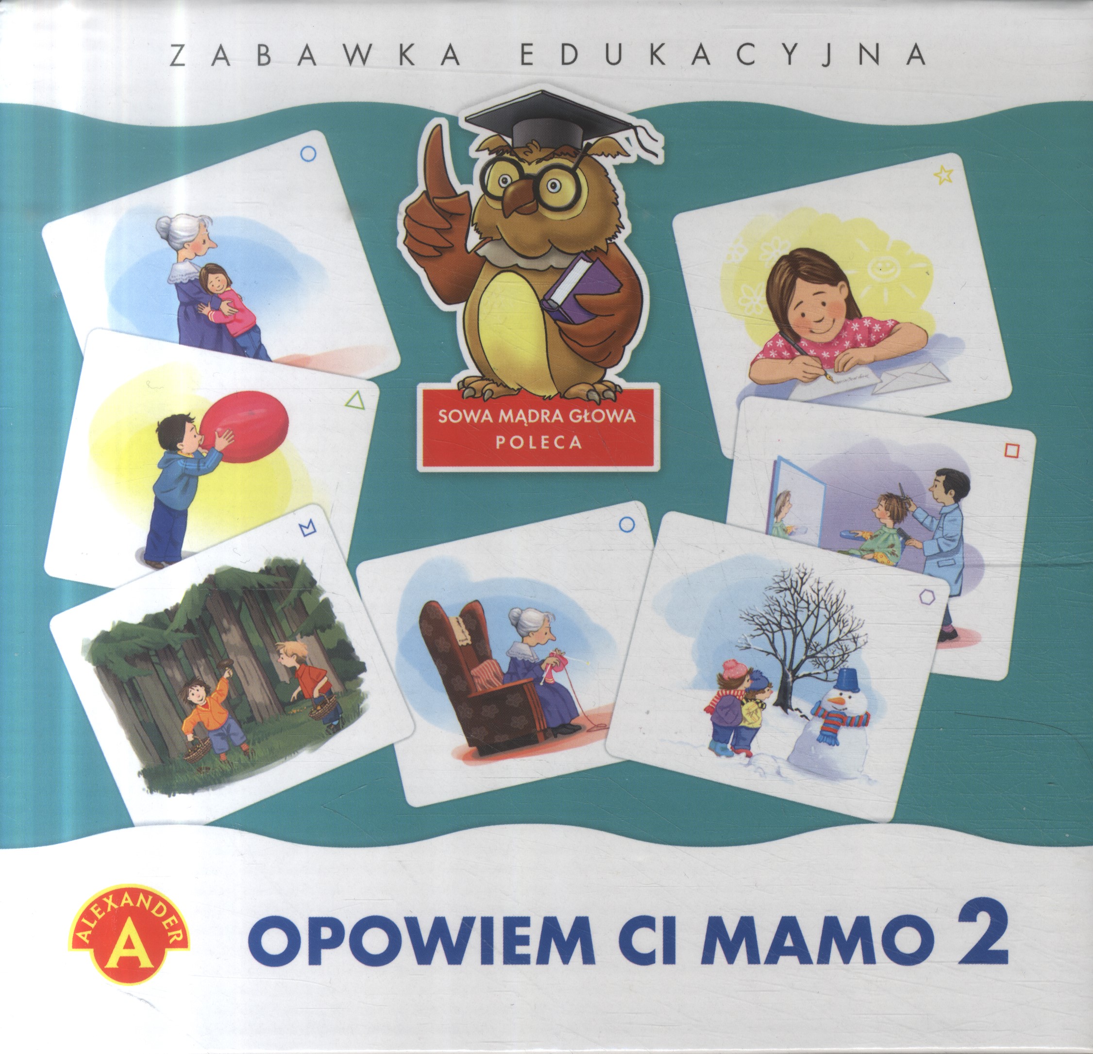 Zabawka dydaktyczna zawierająca 40 obrazków, z których należy ułożyć 10 logicznych historyjek. Każdą z nich dziecko ma następnie opowiedzieć (jak umie najlepiej) swojemu towarzyszowi zabawy. Gra rozwija wyobraźnię i umiejętność wypowiadania się, uczy rozumienia następstw czasowych i logicznego myślenia.