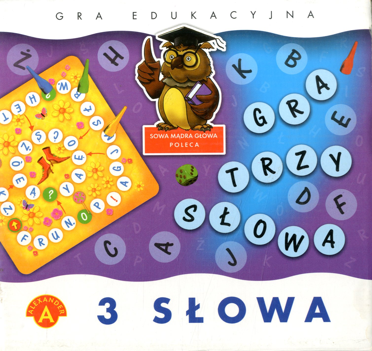 "3 słowa" to emocjonująca, oparta na prostych zasadach, gra, która uczy i zmusza do myślenia. Celem tej gry jest jak najszybsze ułożenie 3 słów: trzyliterowego, czteroliterowego i pięcioliterowego. Każdy z graczy poruszając się swoim pionkiem po torze planszy stara się zebrać jak najwięcej żetonów - liter. Wygrywa ten, kto jako pierwszy ułoży z nich 3 słowa o właściwej ilości liter.