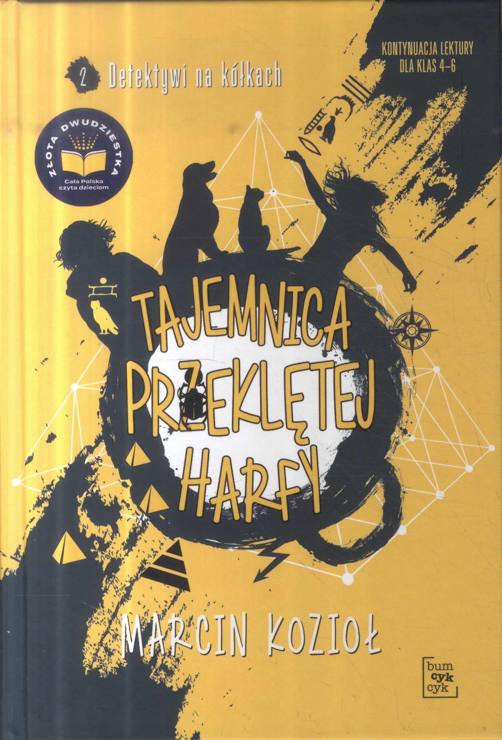 Na okładce: kontynuacja lektury dla klas 4-6. Cz. 1 pt.: Skrzynia władcy piorunów, cz. 2 pt.: Tajemnica przeklętej harfy.